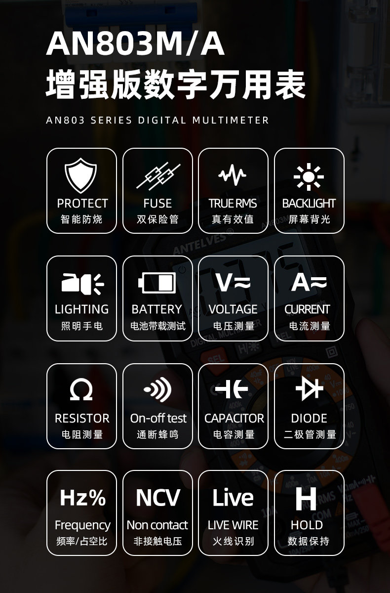 An803M Multimeter Digital High-Precision Automatic Anti-Burn Digital Display Capacitance Measurement Multi-Function Electrician Special Multimeter