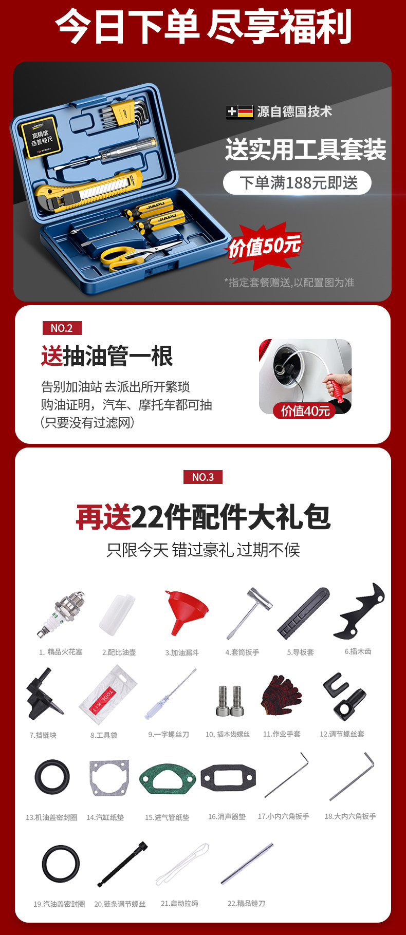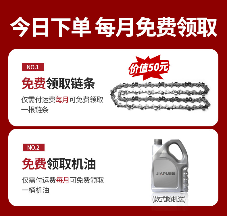 | Color Classification | Long Warranty, 365 Days Free Trial, Full Refund if Not Used,German Diaphragm Carburetor Saves 1,500 Yuan on Fuel Every Month,Enlarged Nickel-Plated Cylinder, High Horsepower, Fast Start and High Efficiency,âââThe Following Models Are Four-Stroke Pure Gasoline Sawsâââ,Efficient Logging, Silent and Fuel-Saving, Sawing 95cm Huge Trees in Seconds,ãFour-Stroke Gasoline ChainsawãLow Fuel Consumption + No Mixing Required + 1 Imported Wear-Resistant Chain + 22-Piece Accessory Kit,ãFour-Stroke Gasoline ChainsawãLow Fuel Consumption + No Mixing Required + 2 Imported Wear-Resistant Chains + 22-Piece Accessory Kit,ãFour-Stroke Gasoline ChainsawãLow Fuel Consumption + No Mixing Required + 3 Imported Wear-Resistant Chains + 22-Piece Accessory Kit,ãFour-Stroke Gasoline ChainsawãLow Fuel Consumption + No Mixing Required + 4 Imported Wear-Resistant Chains + 22-Piece Accessory Kit,ãFour-Stroke PowerhouseãLarge Displacement + No Mixing Required + 1 Imported Wear-Resistant Chain + 22-Piece Accessory Kit,ãFour-Stroke PowerhouseãLarge Displacement + No Mixing Required + 2 Imported Wear-Resistant Chains + 22-Piece Accessory Kit,ãFour-Stroke PowerhouseãLarge Displacement + No Mixing Required + 3 Imported Wear-Resistant Chains + 22-Piece Accessory Kit,ãFour-Stroke PowerhouseãLarge Displacement + No Mixing Required + 4 Imported Wear-Resistant Chains + 22-Piece Accessory Kit |
