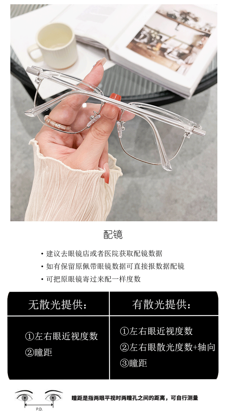 | Color Classification | Black Silver Frame,Black Gold Frame,Transparent Gray Frame,Transparent Frame,Add to Favorites and Place an Order to Receive a Leather Case and Mirror Box |