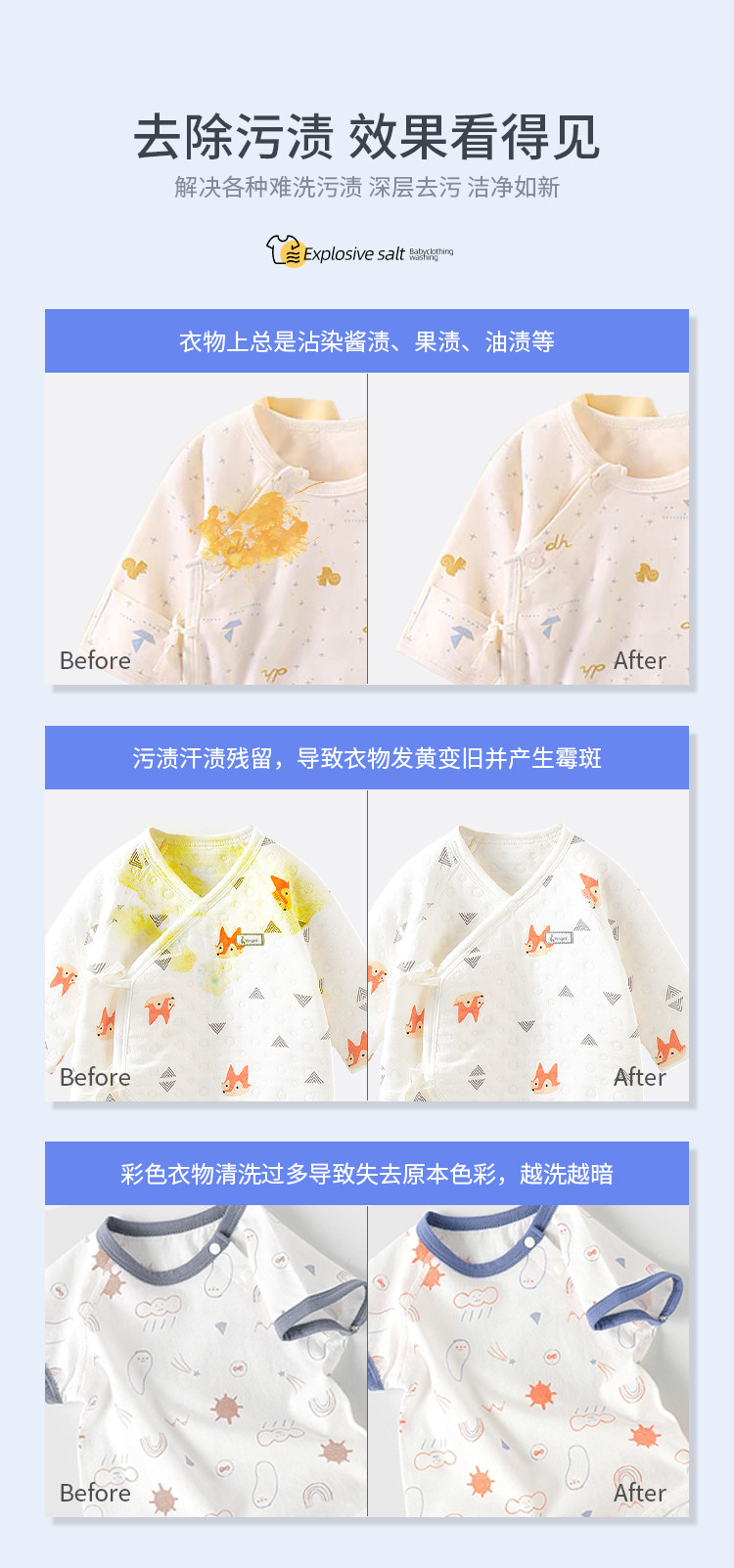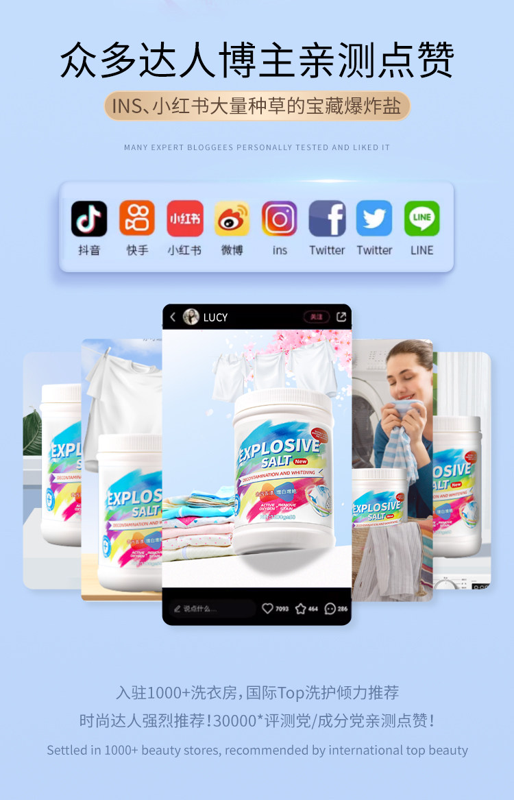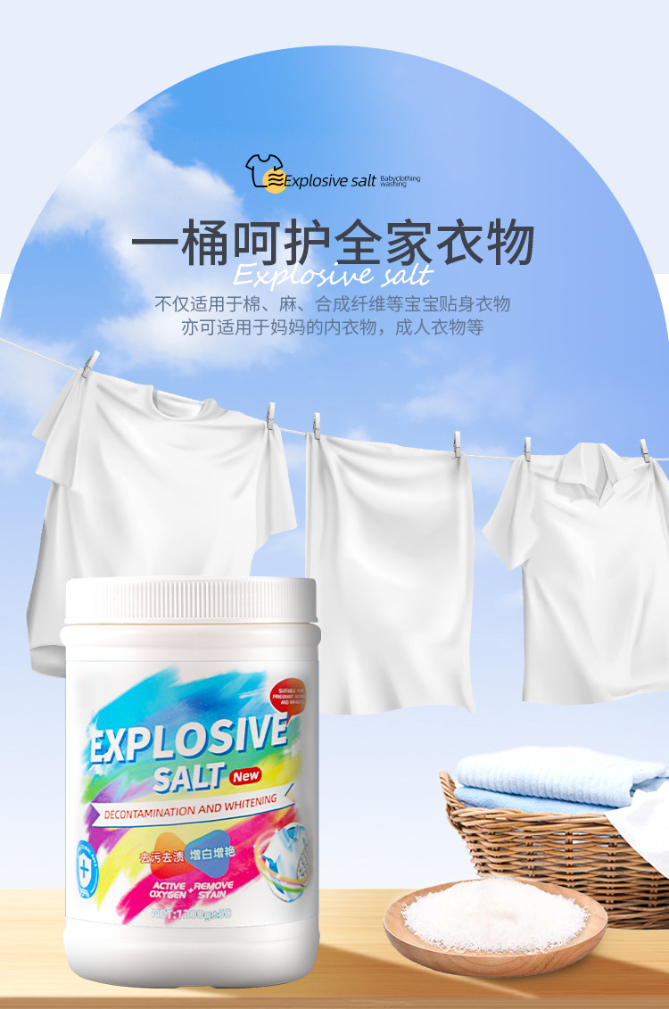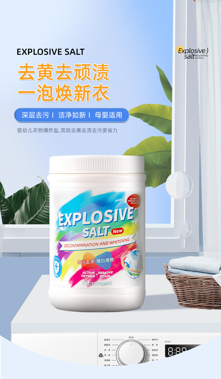 Explosive Salt Laundry Stain Removal Strong Infant and Young Children Yellowing and Whitening Artifact Color Bleaching Powder White Clothing Bleach Genuine