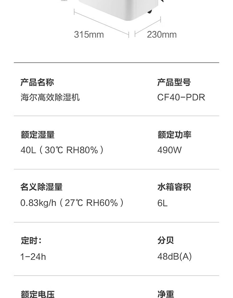 Haier Dehumidifier Household Moisture Absorber Dehumidifier Artifact Basement Dehumidifier Dry Clothes Dehumidification Suction Machine Cf40