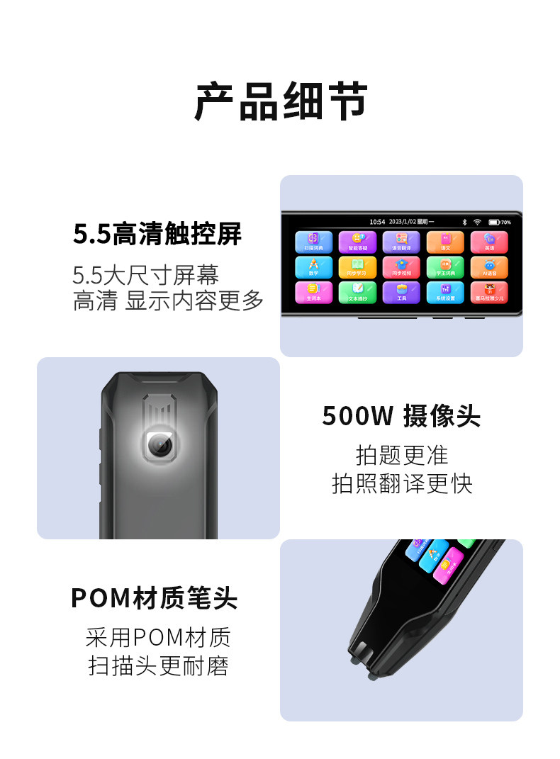 | Additional Features | Real Person Pronunciation,MP4,Supports Screen Handwriting,Supports Expandable Storage Card,Camera Function,MP3 |