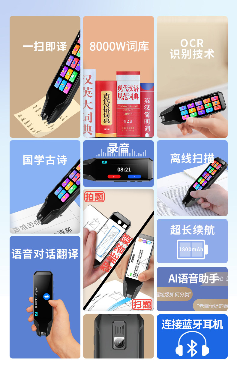 Alpha Dictionary Pen T20Pro Translation Pen Elementary School Middle and High School Students Scanning Pen English Word Learning Reading Pen