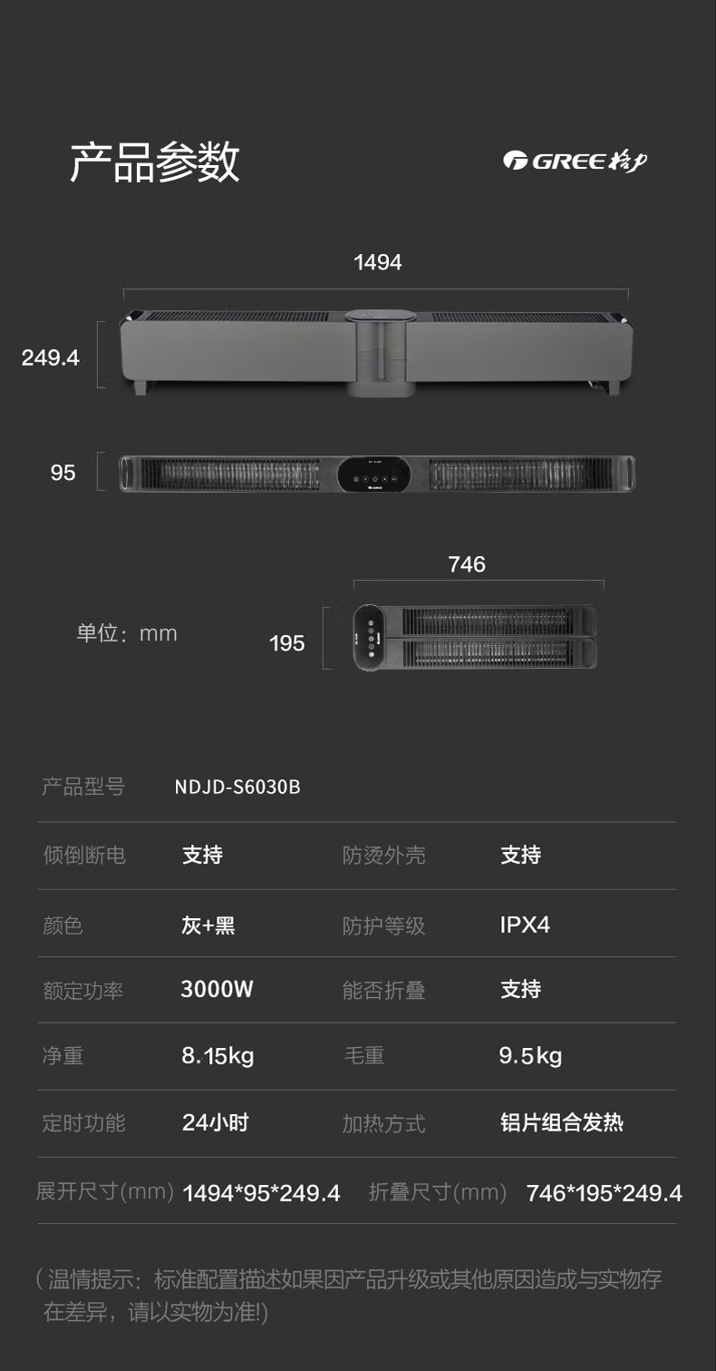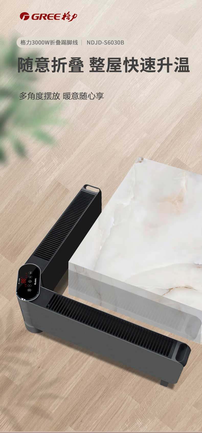 Gree Foldable Baseboard Heater for Home Use in Large Bedrooms, Constant Temperature, Energy-Saving, Floor Heating, Waterproof, Fast Heating Heater