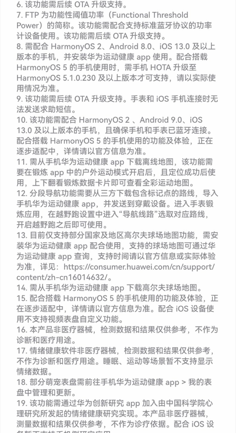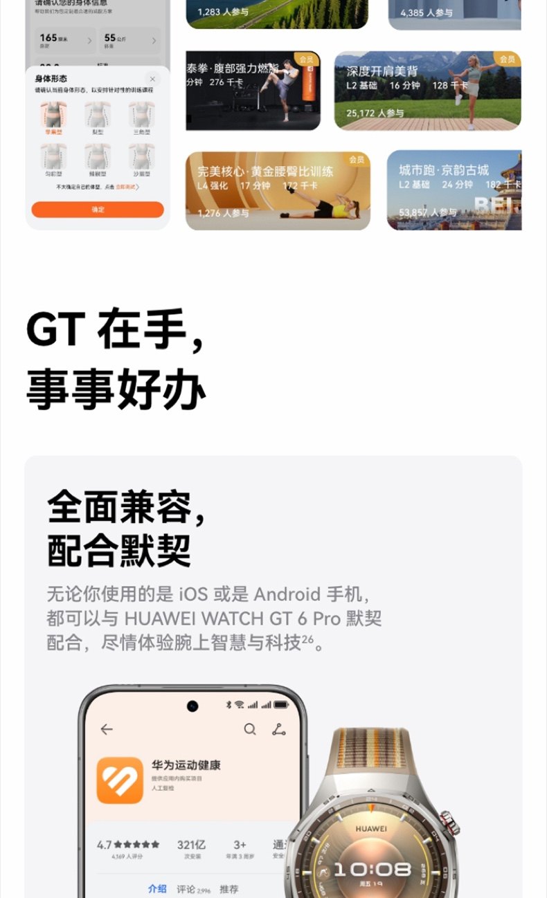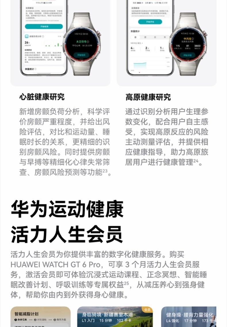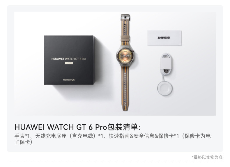 | Appearance Color | Huawei Gt6Pro [46mm Obsidian Black] Comes with High-End Watch Strap/Protective Case,Huawei Gt6Pro [46mm Amber Brown] Comes with High-End Watch Strap/Protective Case,Huawei Gt6Pro [46mm Titanium Silver] Comes with High-End Watch Strap/Protective Case,Gt6Pro [Amber Brown] + Starlight Color Composite Woven Strap,Gt6Pro [Amber Brown] + Ruihong Composite Woven Strap,Gt6Pro [Amber Brown] + Topaz Blue Composite Woven Strap,Gt6Pro [Amber Brown] + Wilderness Green Composite Woven Strap,Gt6Pro [Amber Brown] + Obsidian Black Composite Woven Strap,Gt6Pro [Amber Brown] + Sky Blue Composite Woven Strap,[Heartfelt Gift Box] Obsidian Black + Gift Pack,[Heartfelt Gift Box] Amber Brown + Gift Pack,[Heartfelt Gift Box] Titanium Silver + Gift Pack,Huawei New Year Gift Box [46mm Obsidian Black] + New Year Limited Gift,Huawei New Year Gift Box [46mm Amber Brown] + New Year Limited Gift,Huawei New Year Gift Box [46mm Titanium Silver] + New Year Limited Gift,[Christmas Limited Gift Box] Obsidian Black + Gift Pack,[Christmas Limited Gift Box] Amber Brown + Gift Bag,[Christmas Limited Gift Box] Titanium Sky Silver + Gift Pack |