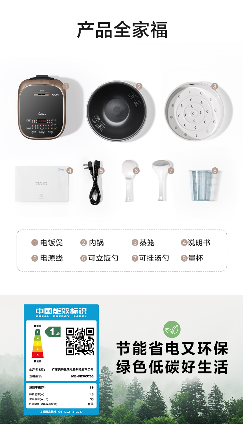 Midea Rice Cooker 3L Household Rice Cooker Smart Cooking Small Multi-Function Liter 2-6 People Quick Cooking Genuine 705t