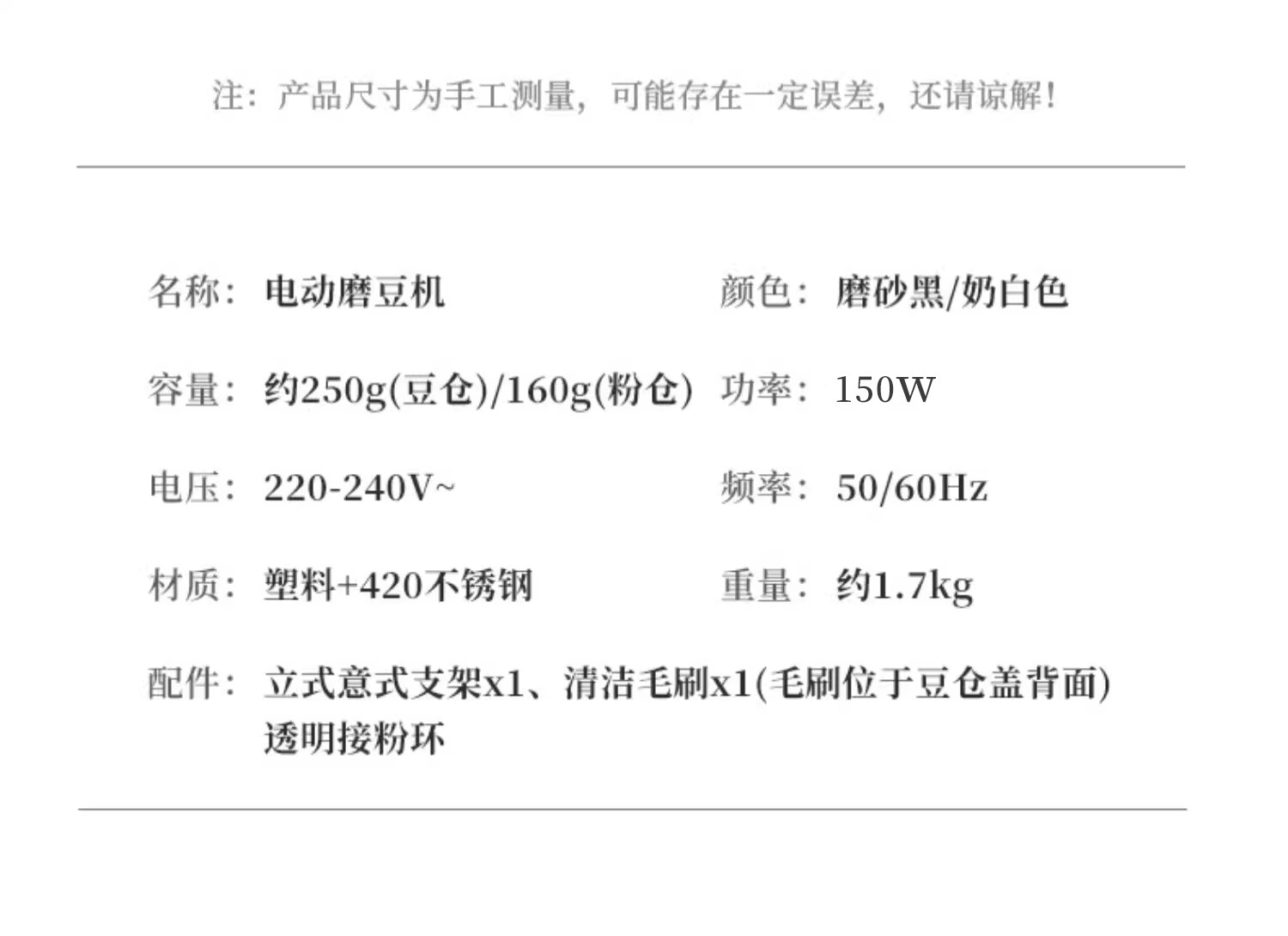 | Color Classification | Cream White,Elegant Black,Creamy White Touchscreen Electric Coffee Grinder + Tamper,Elegant Black Touch Screen Electric Grinder + Powder Shaker |