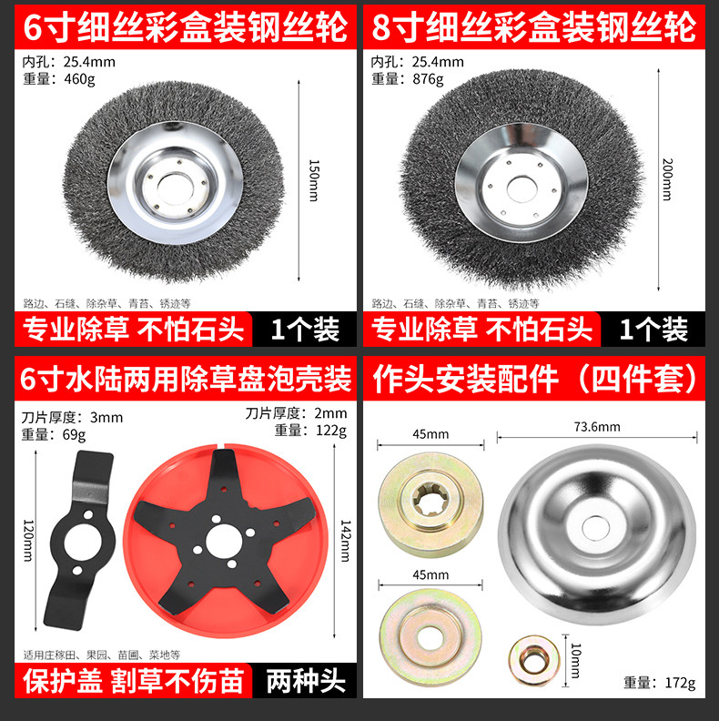 | Color Classification | 6inch [Upgraded Knotted Thick Wire] Weeding Wheel,6inch [Upgraded Knotted Thick Wire] + 4-Piece Set of Working Head Accessories,6inch [Upgraded Thin Steel Wire] Weeding Wheel,8inch [Upgraded Knotted Thick Wire] Weeding Wheel,8inch [Upgraded Knotted Thick Wire] + 4-Piece Set of Working Head Accessories,8inch [Upgraded Thin Steel Wire] Weeding Wheel,6inch [Upgraded Thin Steel Wire] 2 Pack,6inch [Upgraded Knotted Thick Silk] 2 Pack,8inch [Upgraded Thin Steel Wire] 2 Pack,8inch [Upgraded Knotted Thick Silk] 2 Pack,6inch + 8inch [Upgraded Knotted Thick Wire] Weeding Wheel,6inch + 8inch [Upgraded Thin Steel Wire] Weeding Wheel,10inch [Upgraded Knotted Thick Silk],10inch [Upgraded Knotted Thick Wire] + 4-Piece Set of Working Head Accessories,10inch [Upgraded Knotted Thick Silk] 2 Pack,[3-Knife Lithium Battery Model] Kinked Wire Reel,[3-Knife Lithium Battery Model] Kinked Steel Wire Reel (Pack of 2),[6-Knife Lithium Battery Model] Kinked Wire Reel,【6-Blade Lithium Battery Model】Kink-Resistant Steel Wire Twister (2-Pack),[3 Knives + 6 Knives Lithium Battery Model] Kinked Wire Reel,4-Piece Set of Working Head Installation Accessories |
