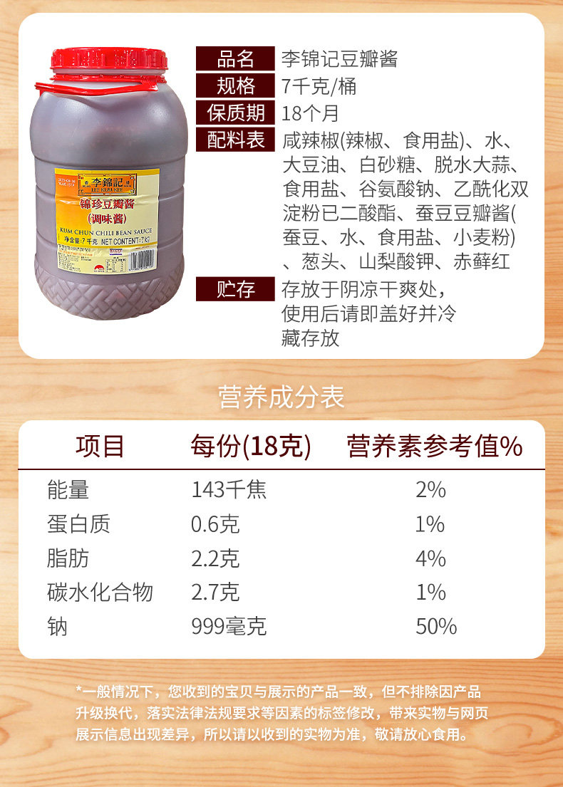 Lee Kum Kee Jinzhen Doubanjiang Commercial 7kg Catering Pack Barbecue Sauce Fragrant Cake Red Oil No Chopping Needed Jingzhen Fine Bean Paste Sauce