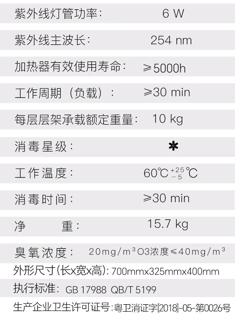 | Disinfection Cabinet Capacity | 41L |