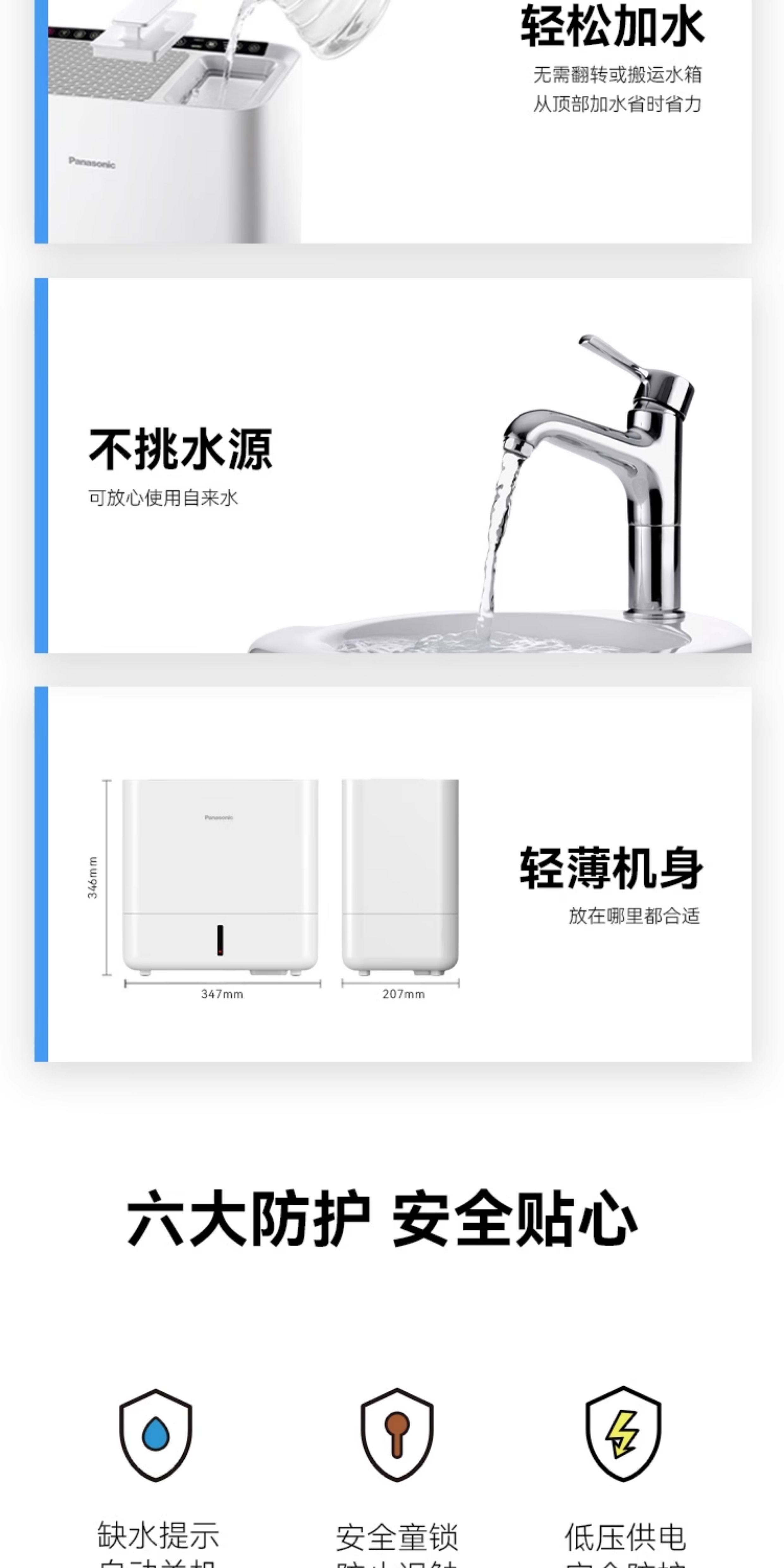 Panasonic Air Humidifier Smart Mist-Free Home Indoor Humidifier for Pregnant Women and Babies Bedroom Living Room Large Capacity Humidifier