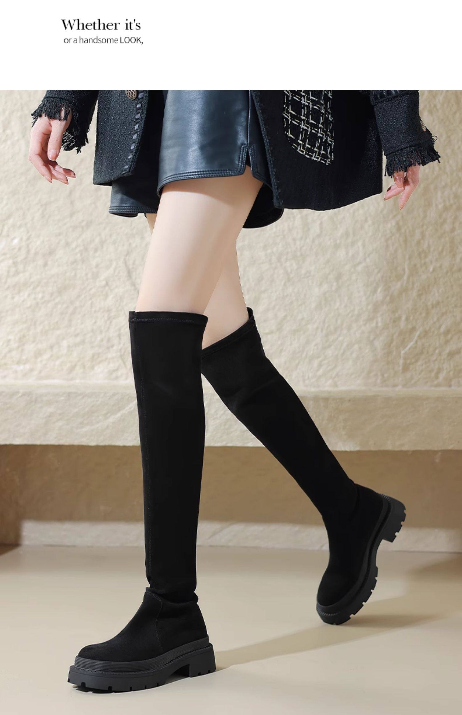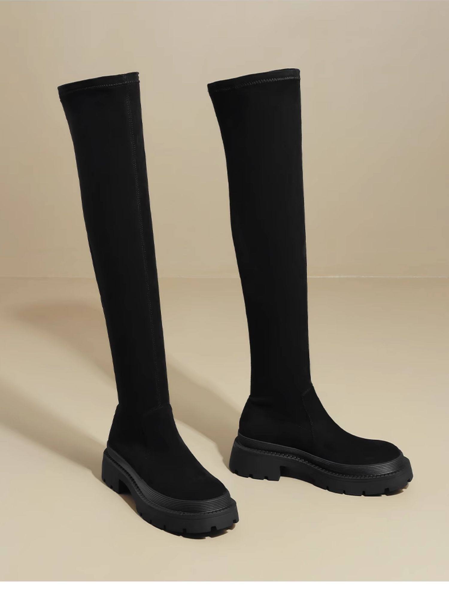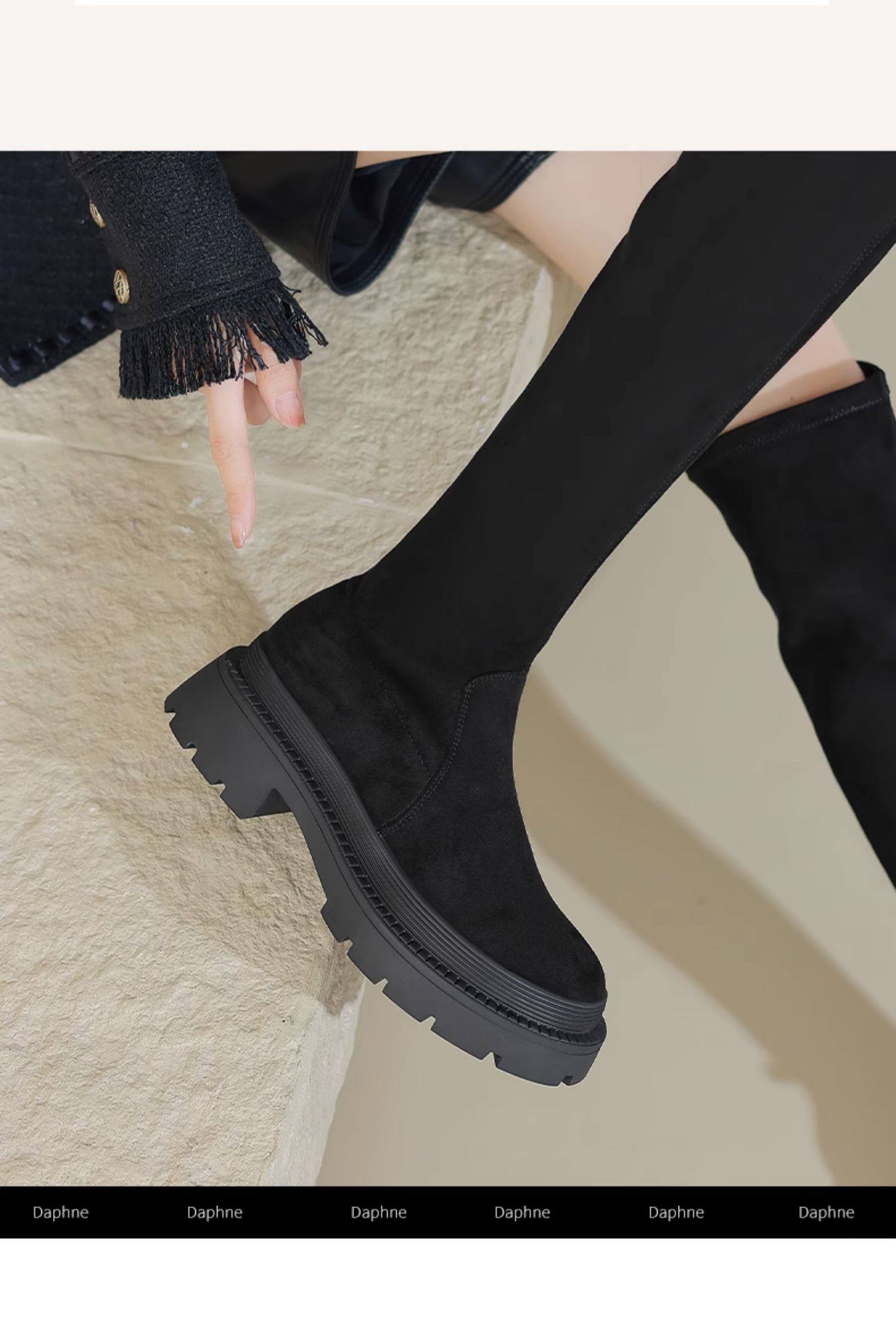 Daphne Stockings Boots 2025 Spring Over-The-Knee Boots Thick-Soled Long Boots Slimming Fleece-Lined Elastic Slim Socks Shoes