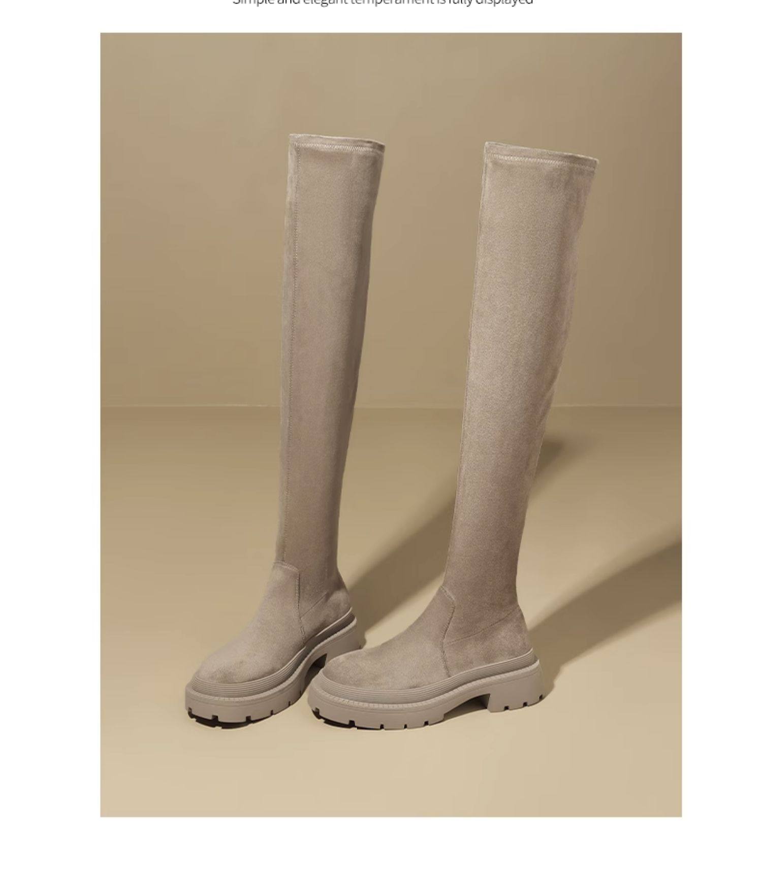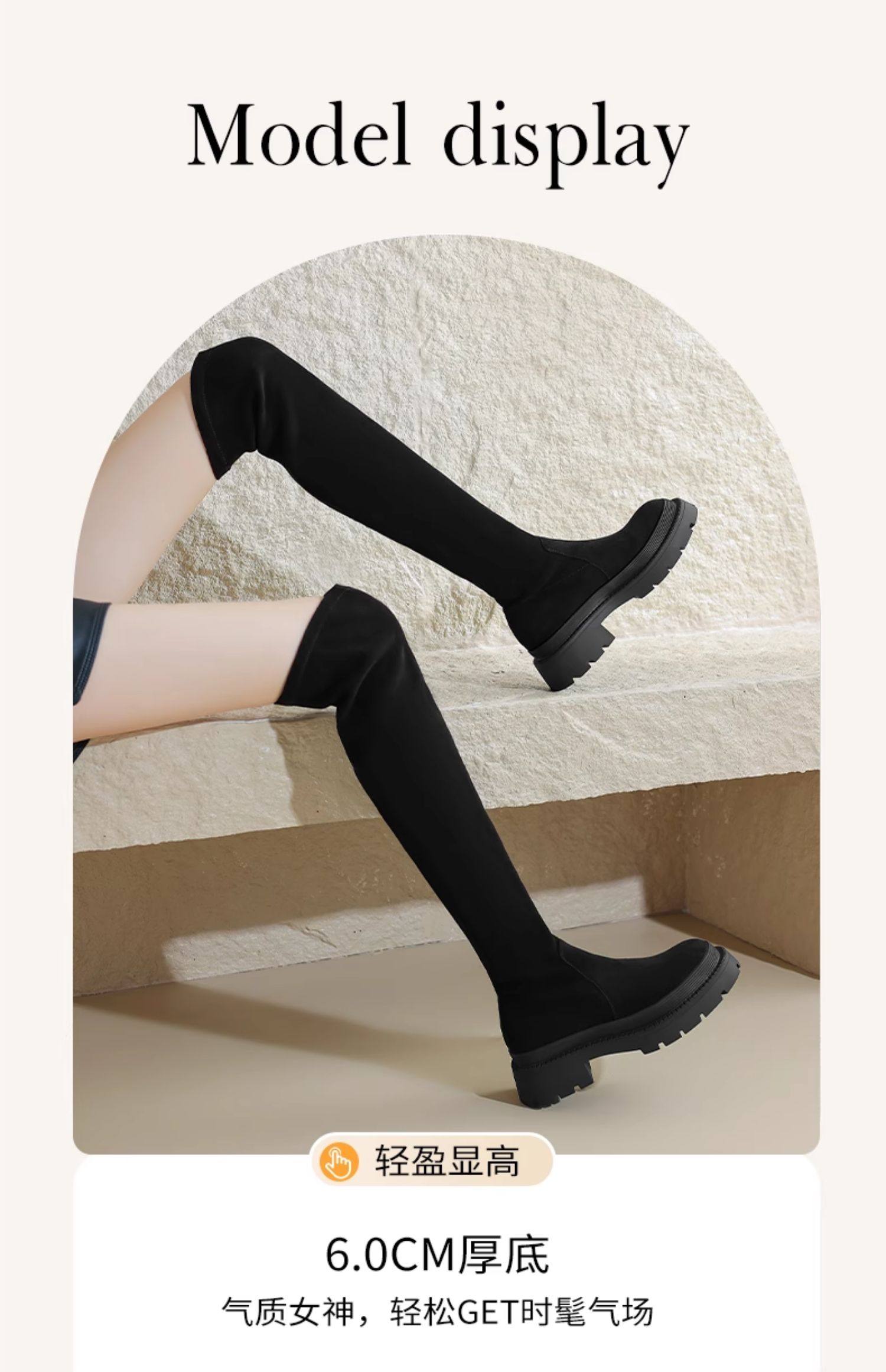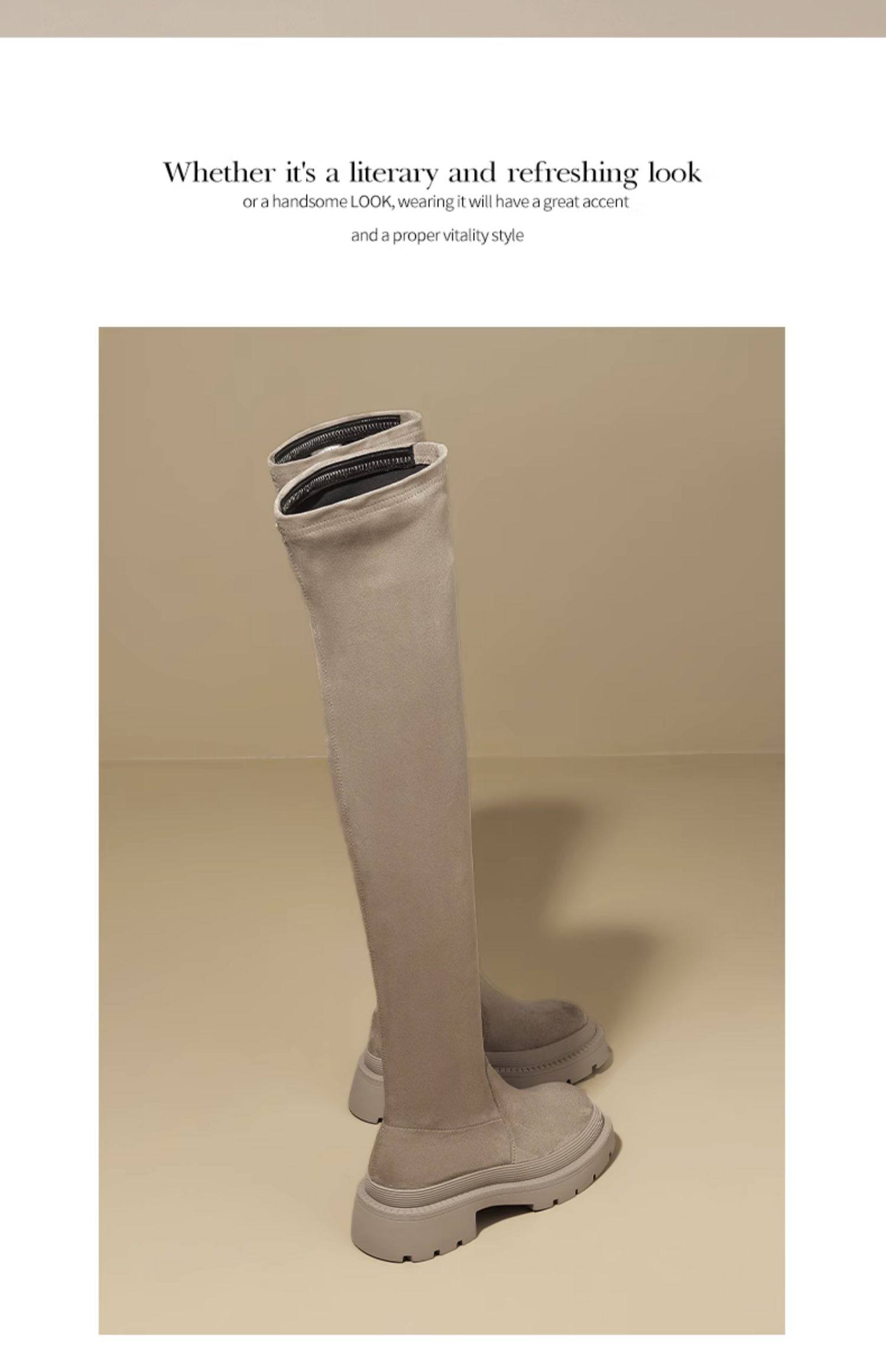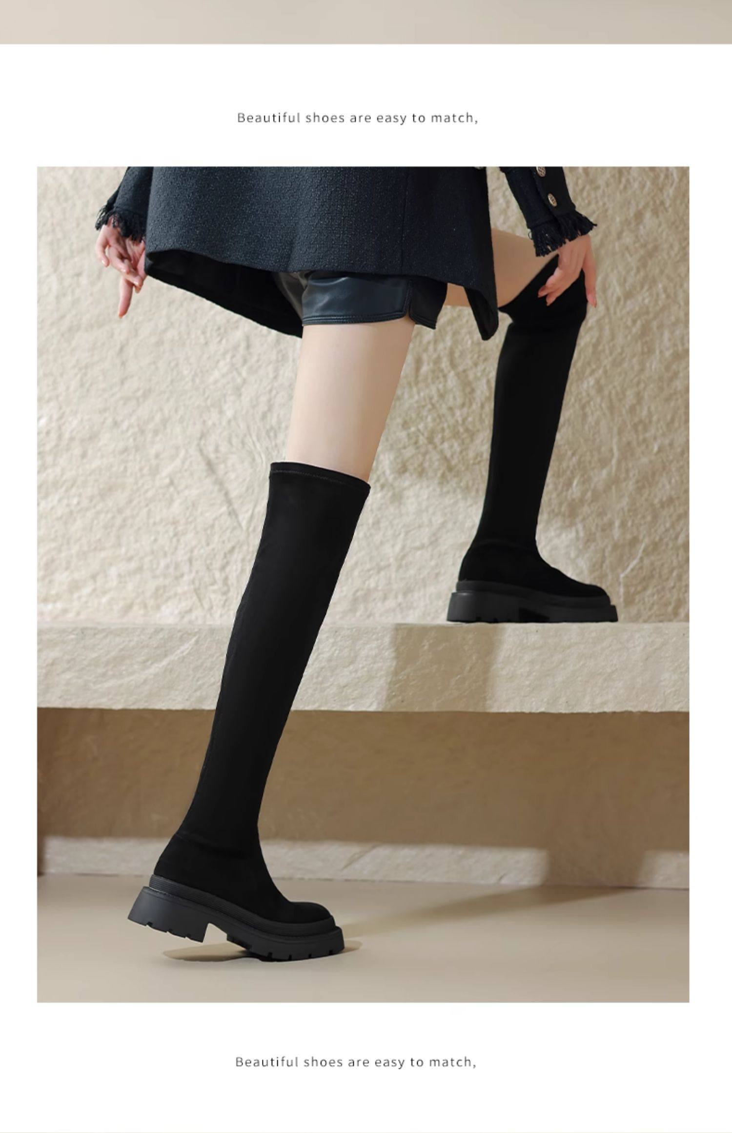 Daphne Stockings Boots 2025 Spring Over-The-Knee Boots Thick-Soled Long Boots Slimming Fleece-Lined Elastic Slim Socks Shoes