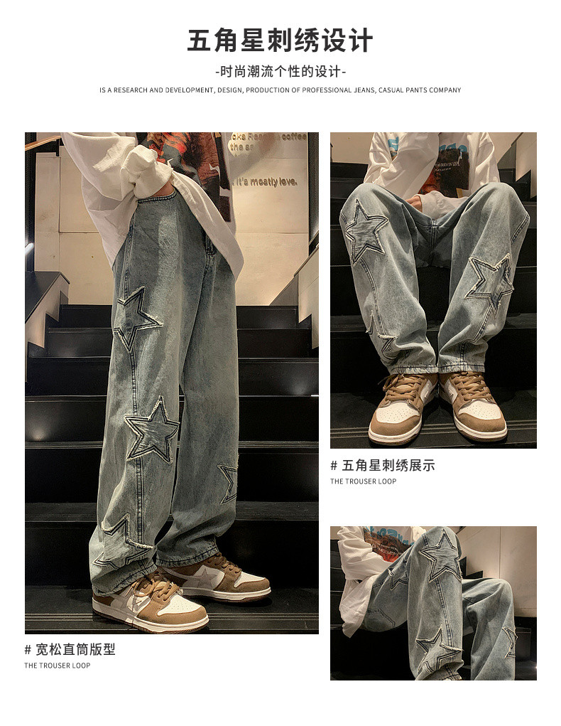 American High Street Style Plus-Size Jeans for Women, Autumn and Winter Loose Straight-Leg 2025 New Model Wide-Leg Pants for Middle and High School Students