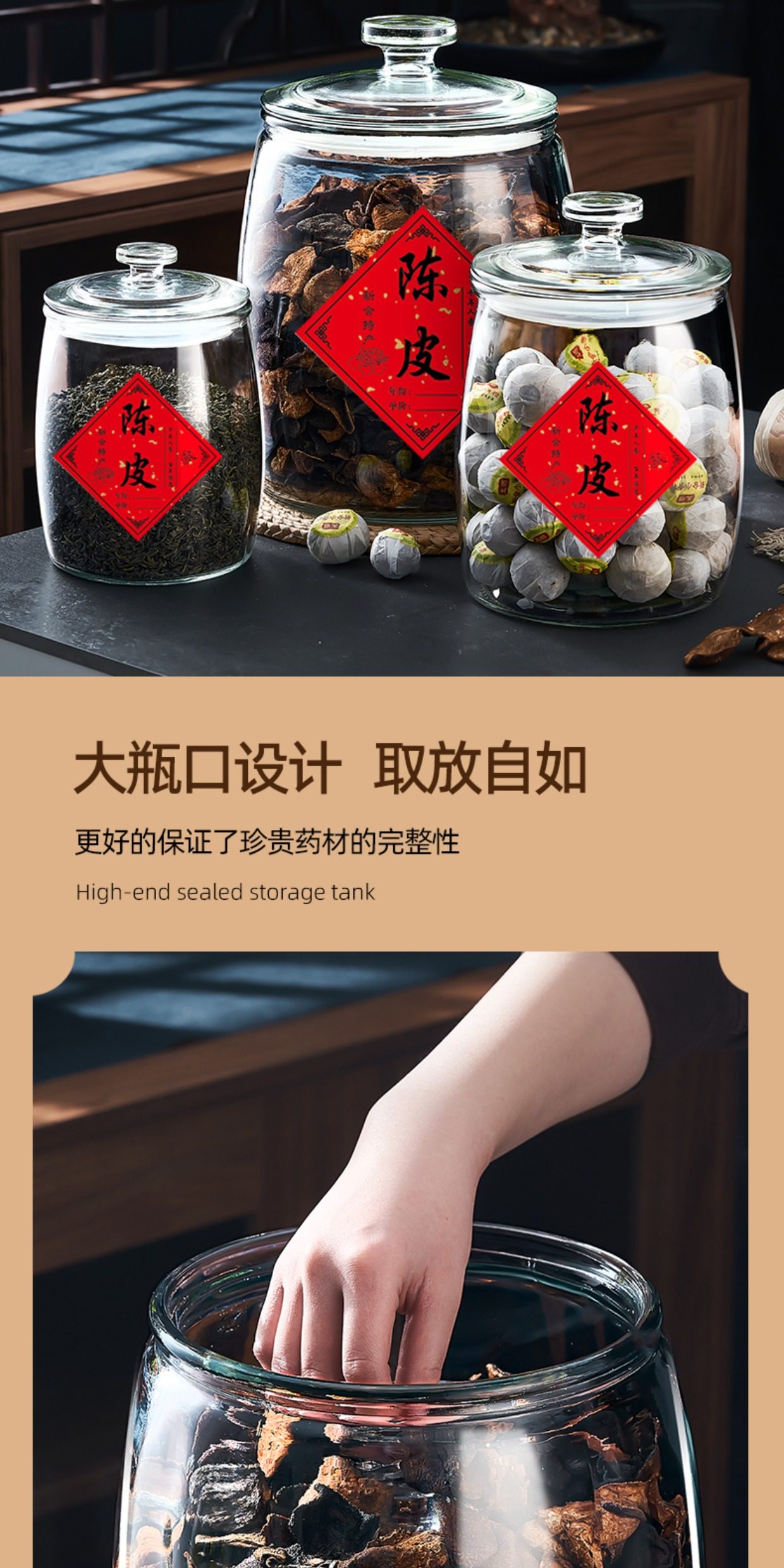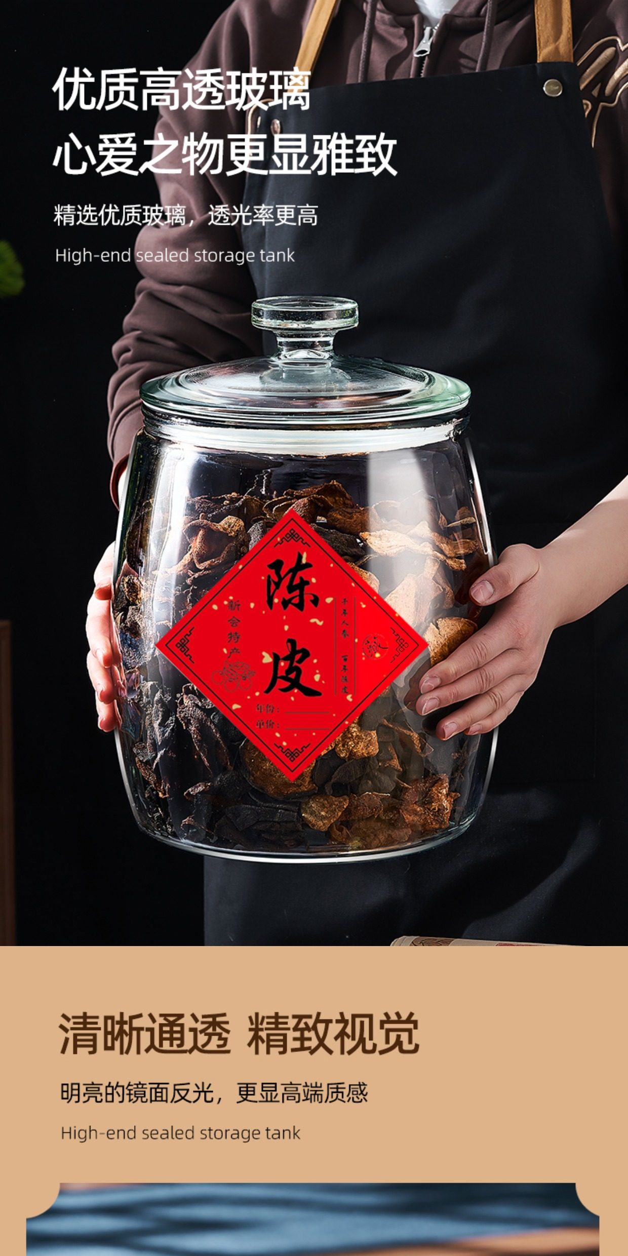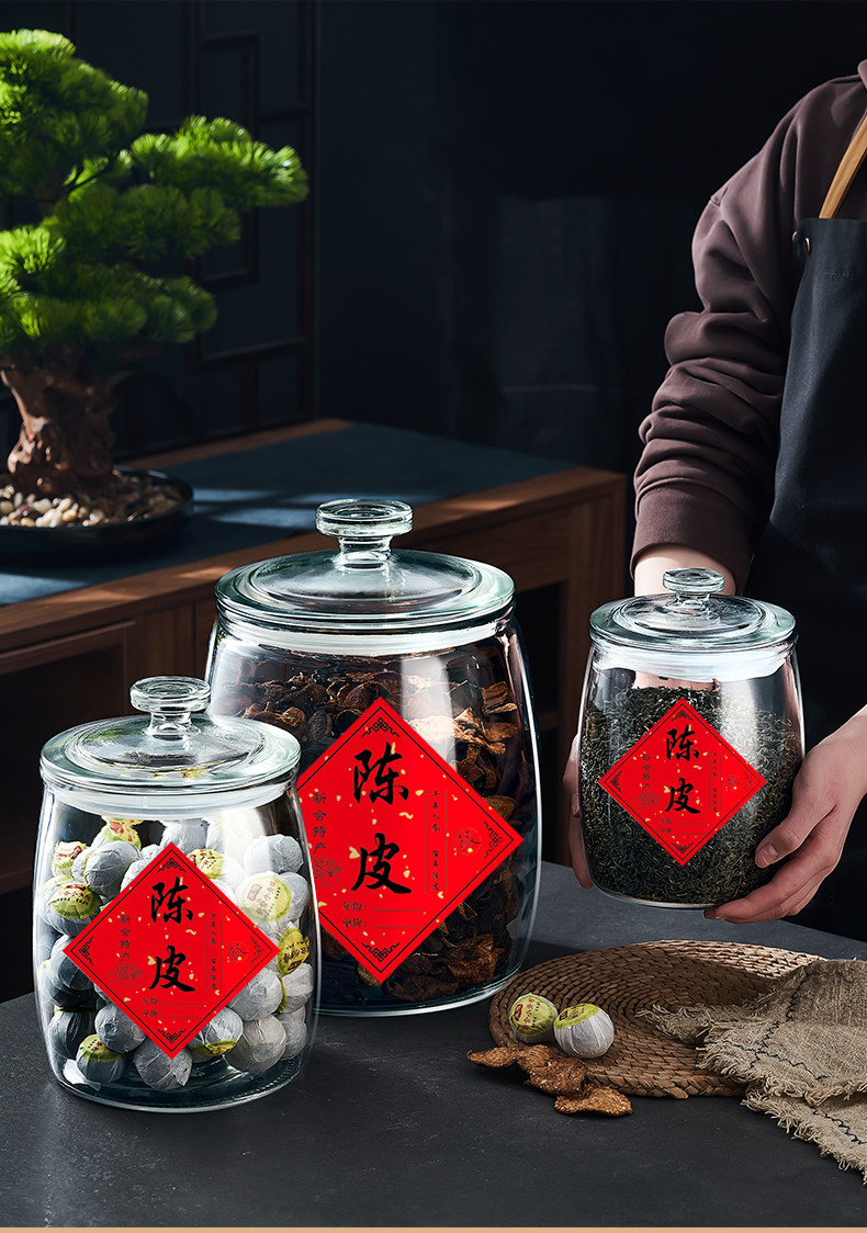 Tangerine Peel Storage Jar, Household and Commercial Use, Sealed Glass Bottle for Traditional Chinese Medicine, Food-Grade Special Glass Jar, Tea Jar, Storage Jar