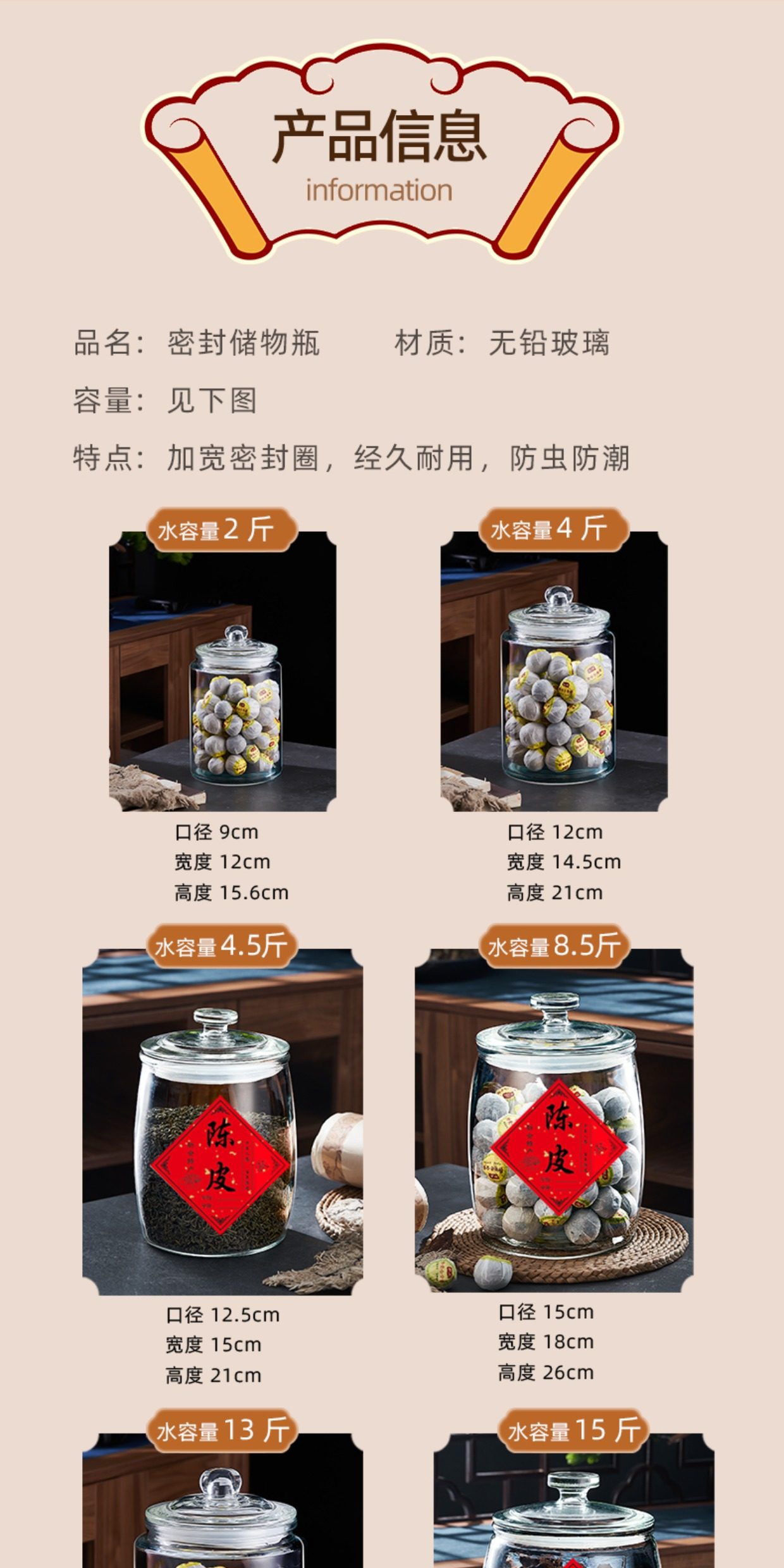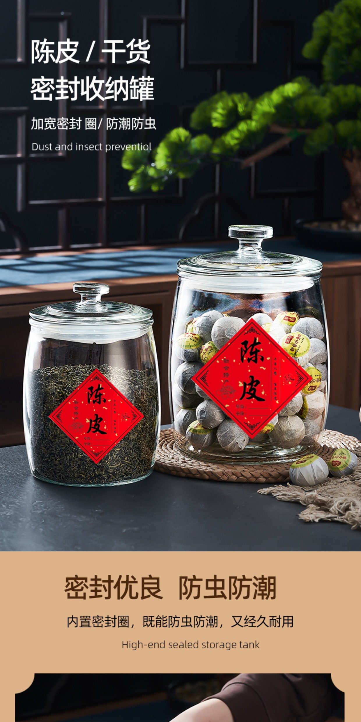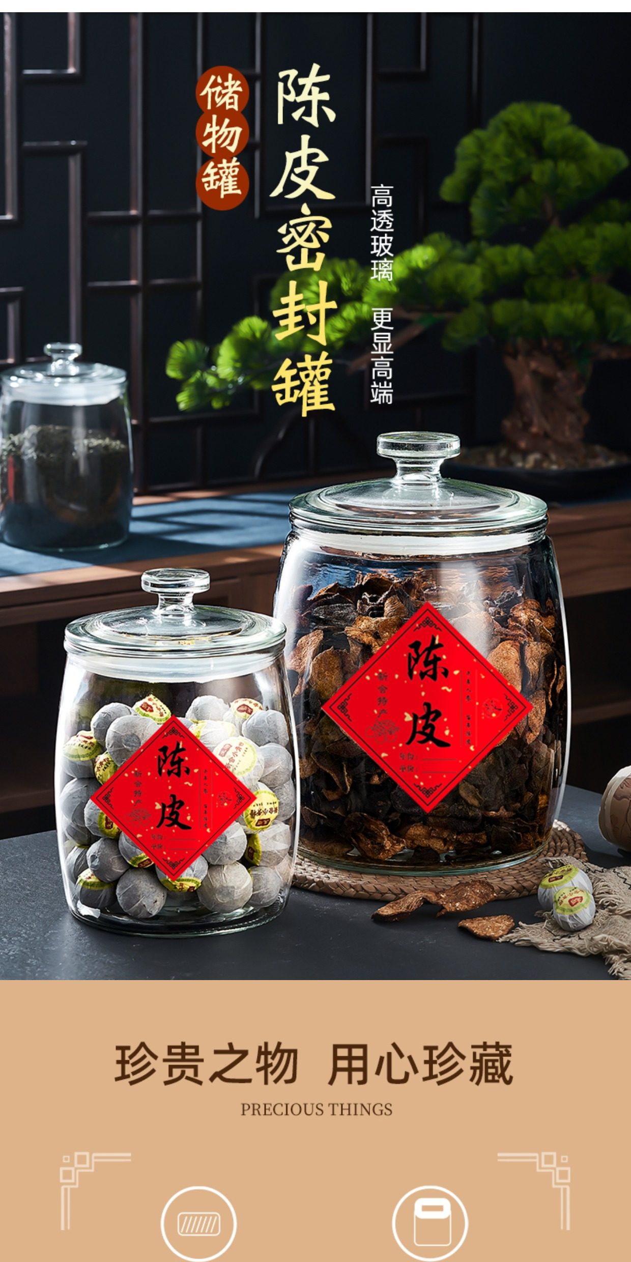 Tangerine Peel Storage Jar, Household and Commercial Use, Sealed Glass Bottle for Traditional Chinese Medicine, Food-Grade Special Glass Jar, Tea Jar, Storage Jar