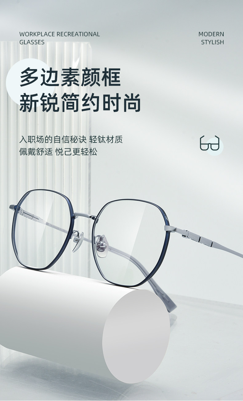 Professional Online Prescription Glasses for Men, Available with Prescription Lenses, Ultra-Light Pure Titanium Retro Polygonal Eyeglass Frames for Women