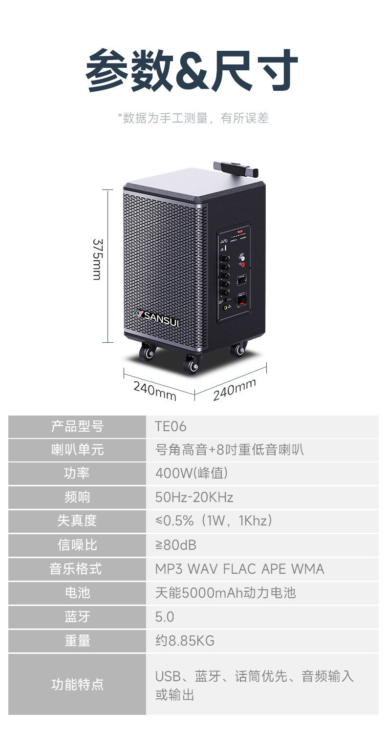 Shanshui Te06 Outdoor Square Dance Audio Bluetooth Speaker Mobile Portable Singing and Dancing High-Power Subwoofer