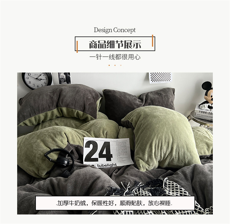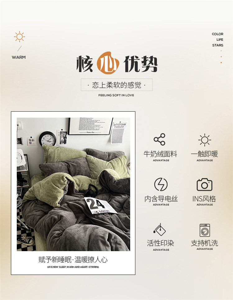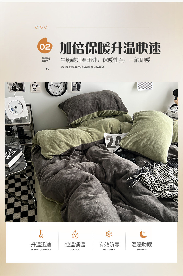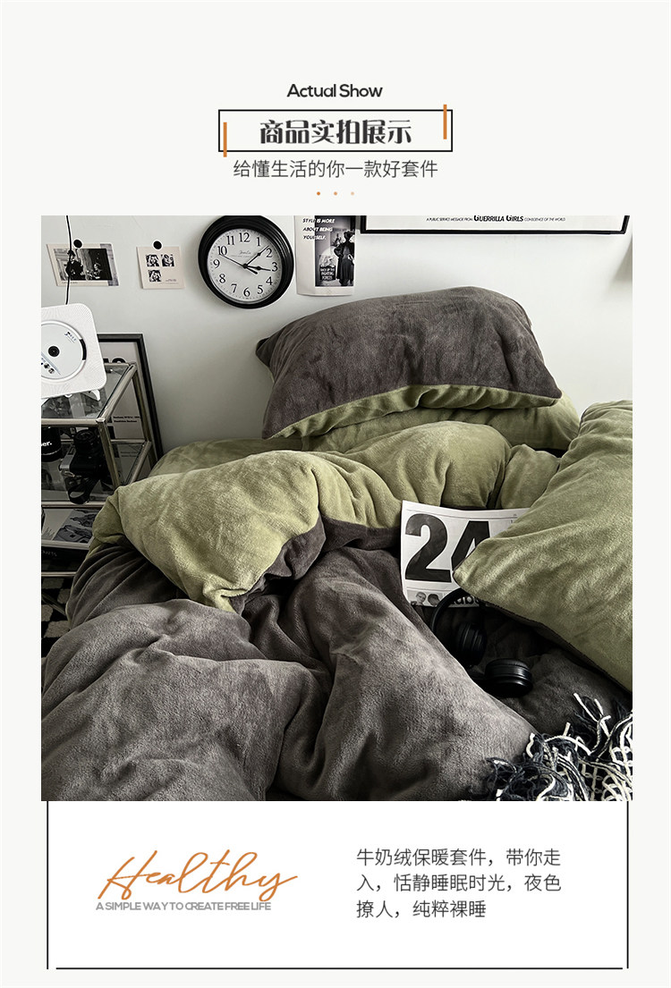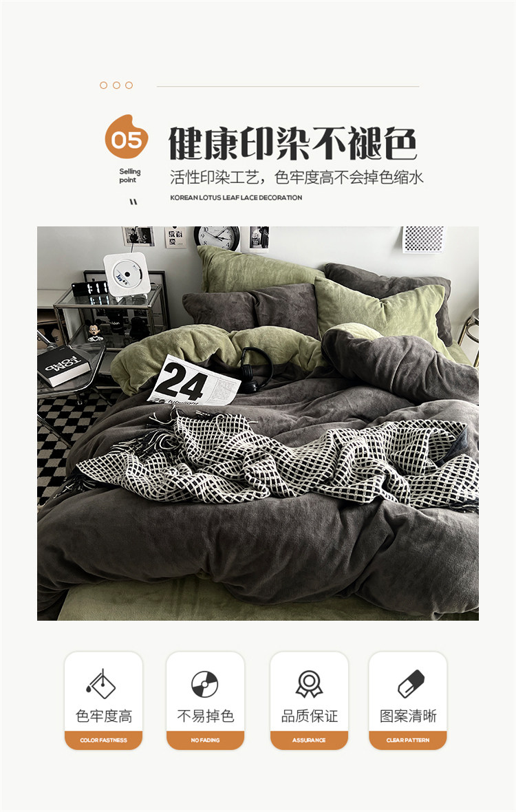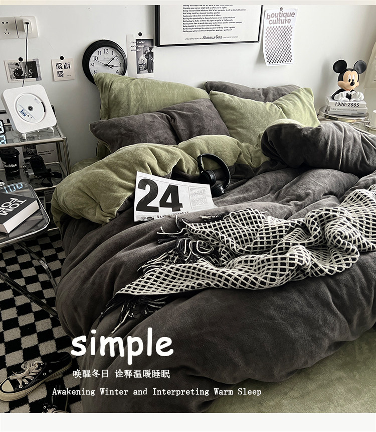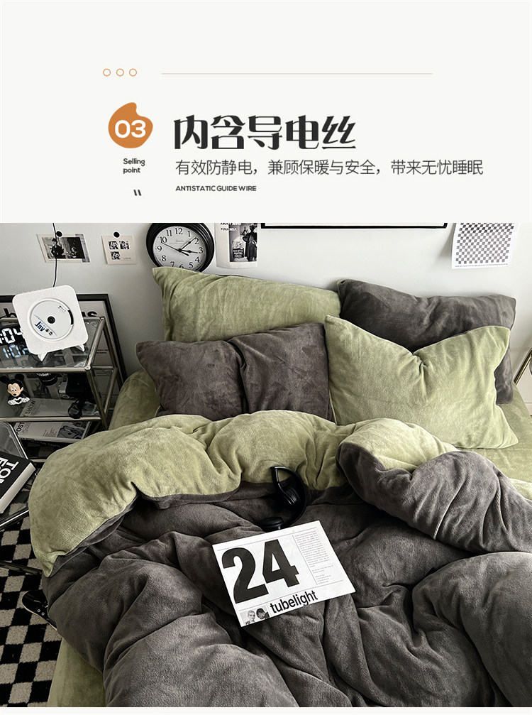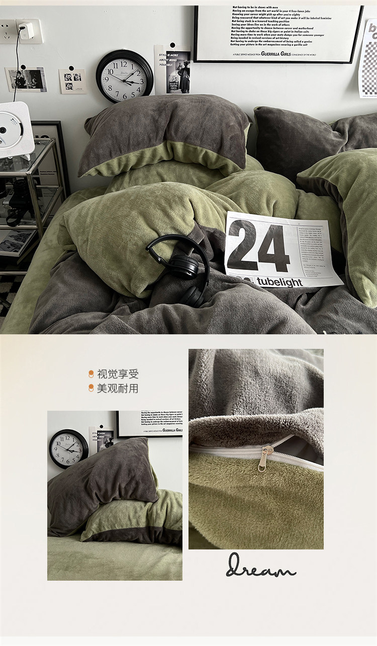 Autumn and Winter Milk Velvet Four-Piece Bedding Set, Double-Sided Fleece Coral Fleece Bed Sheet, Duvet Cover, Three-Piece Thick Plush Bedding Set