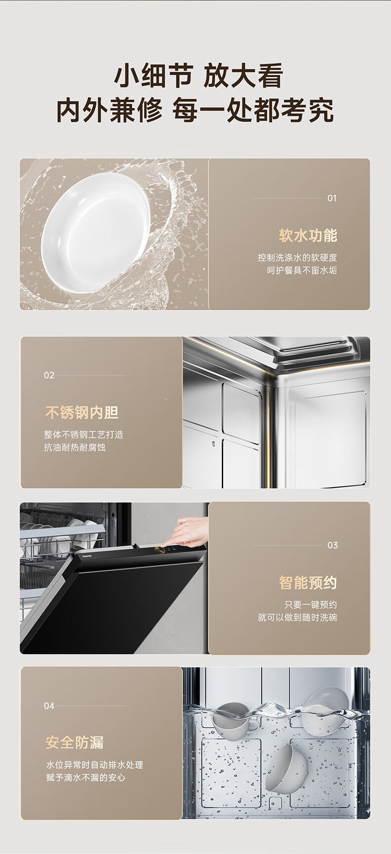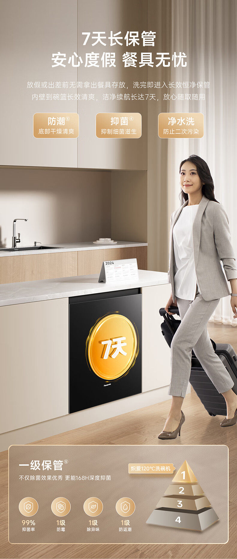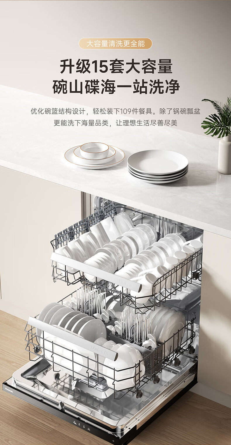 [A1 Series] Panasonic Built-In Dishwasher with 15 Sets of Large Capacity for Home Use, Fully Automatic, High-Temperature Drying and Sterilization