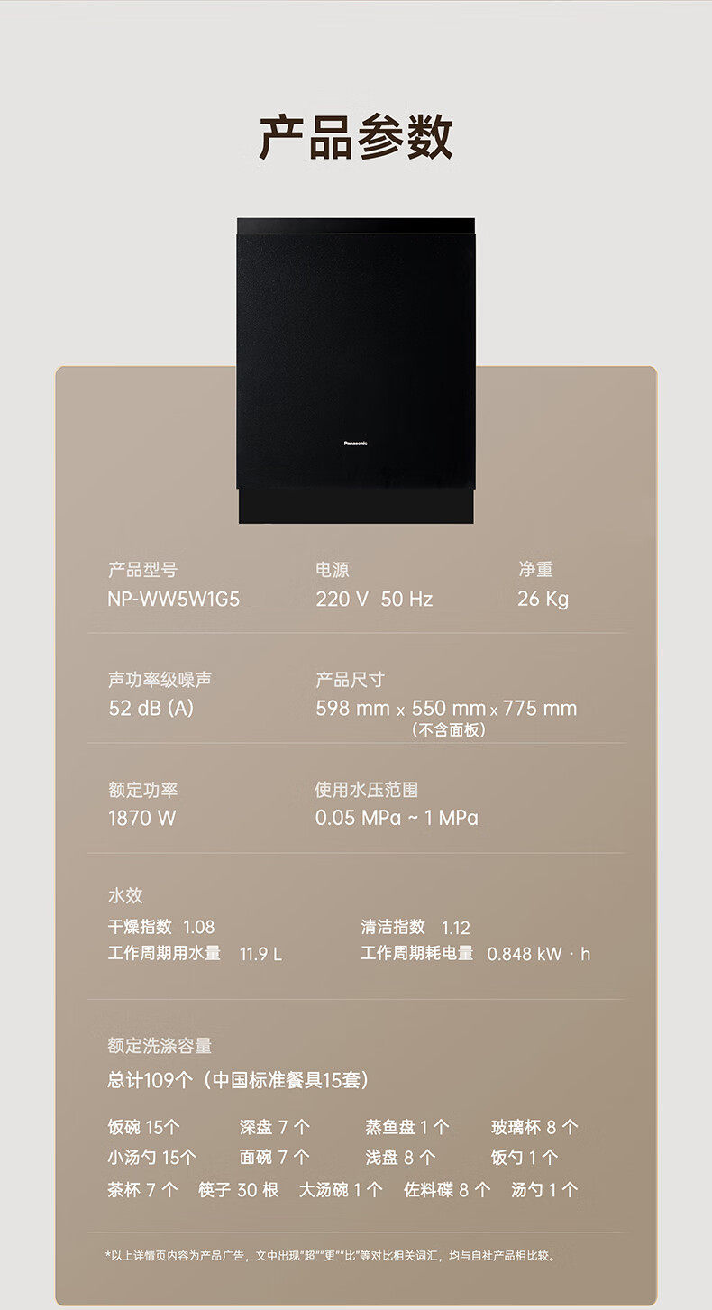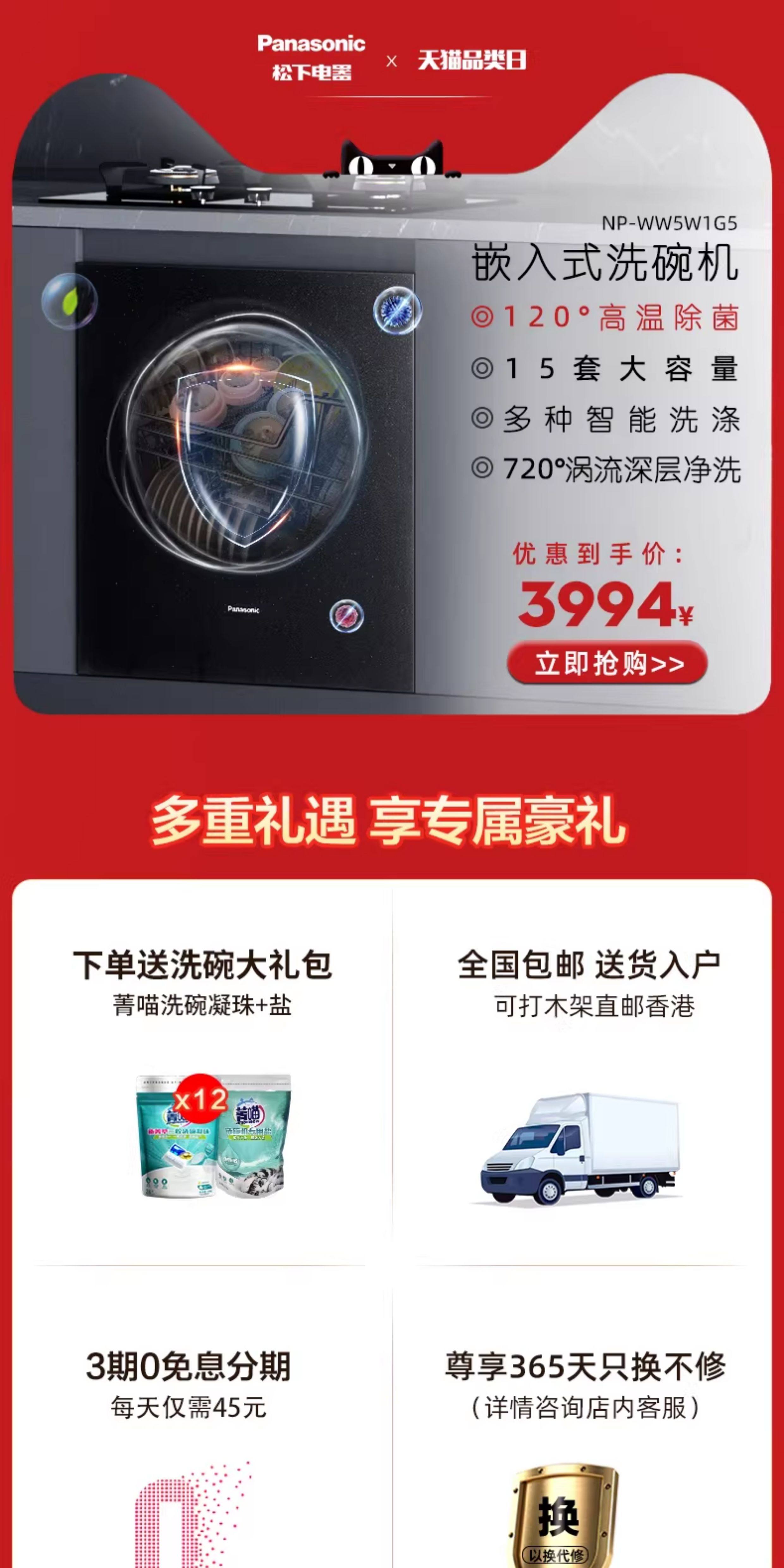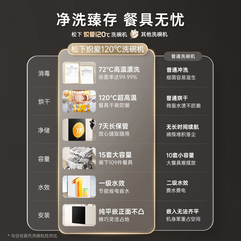 [A1 Series] Panasonic Built-In Dishwasher with 15 Sets of Large Capacity for Home Use, Fully Automatic, High-Temperature Drying and Sterilization