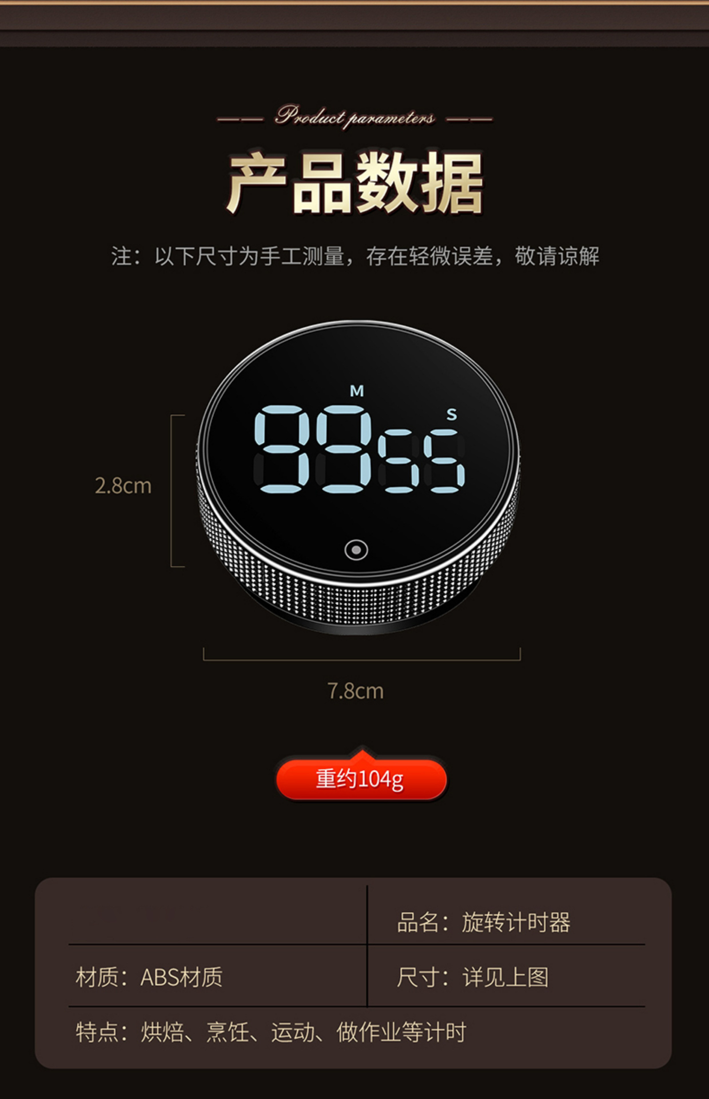 Kitchen Timer, Magnetic Rotating Electronic Timer, Cooking, Learning, Countdown, Stopwatch, Fitness, Self-Discipline