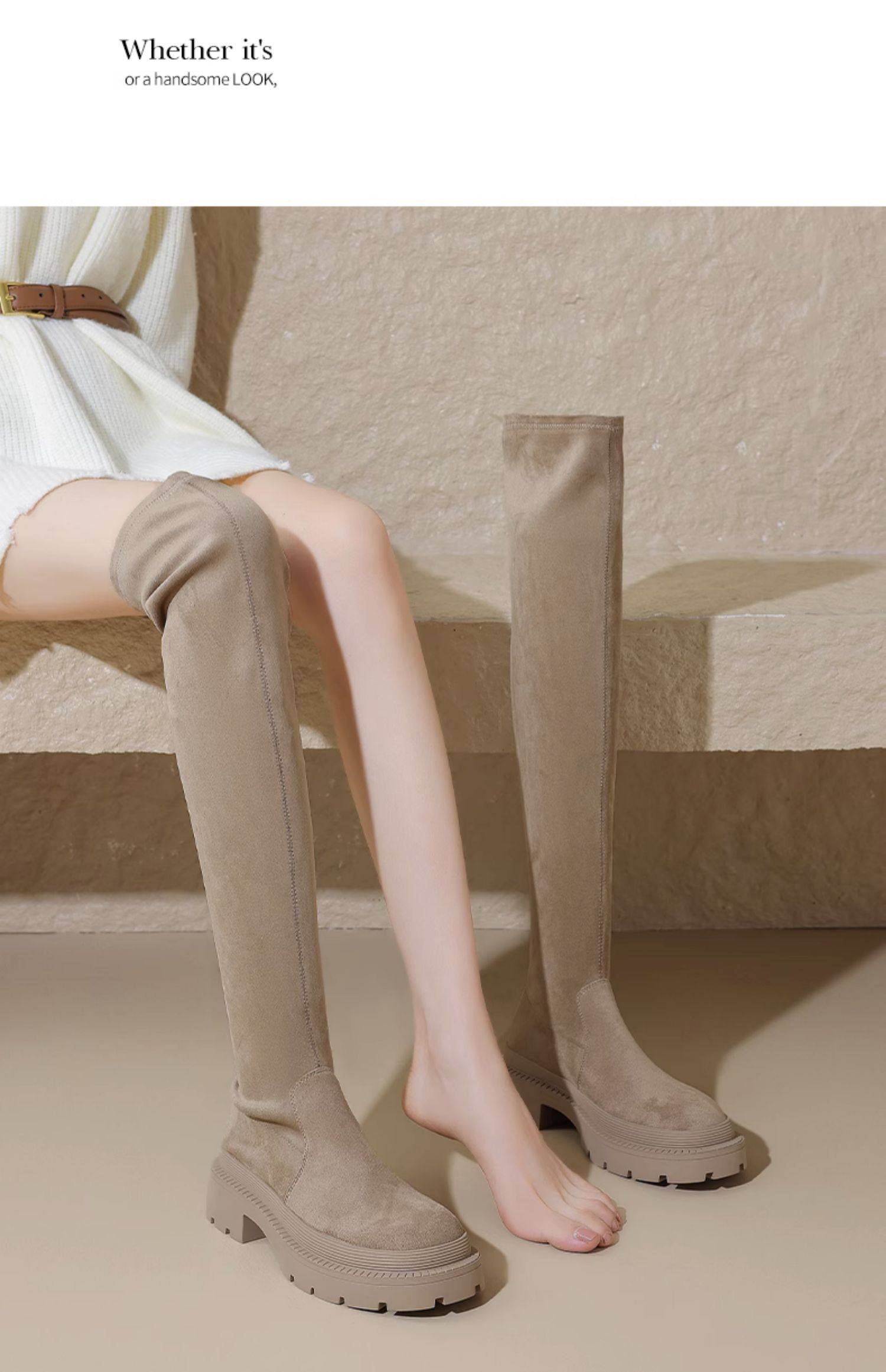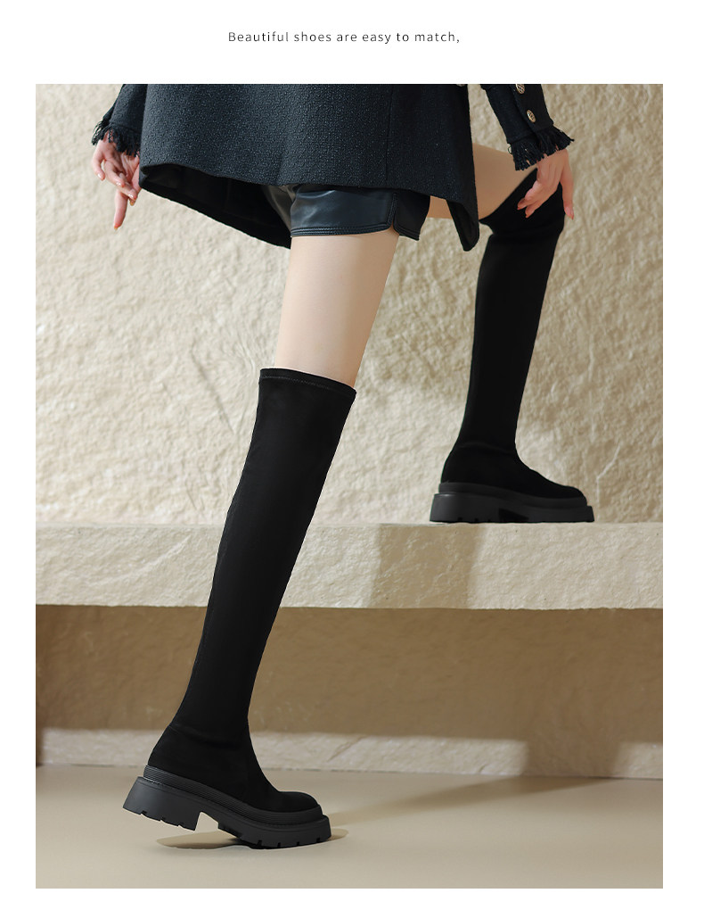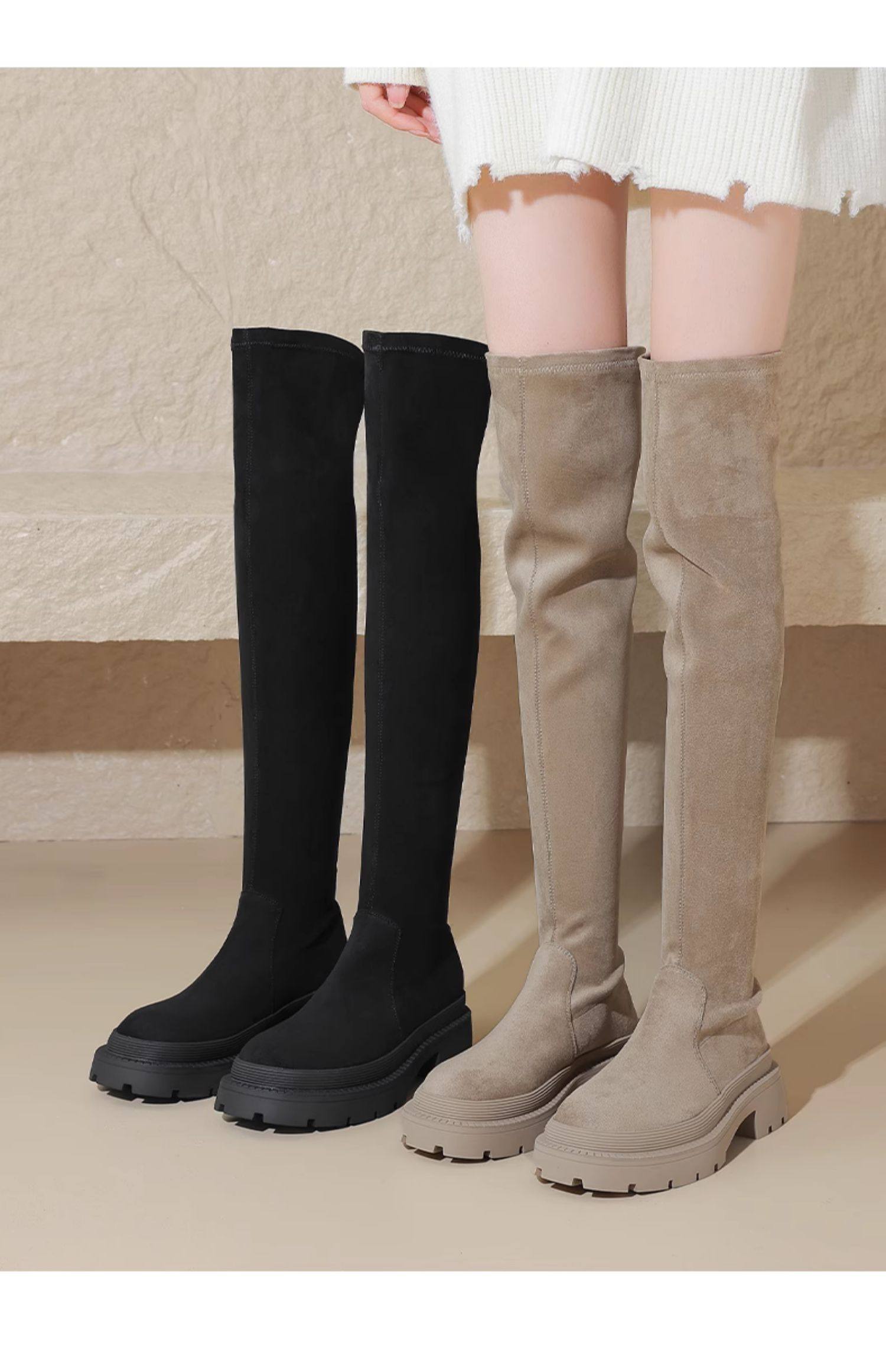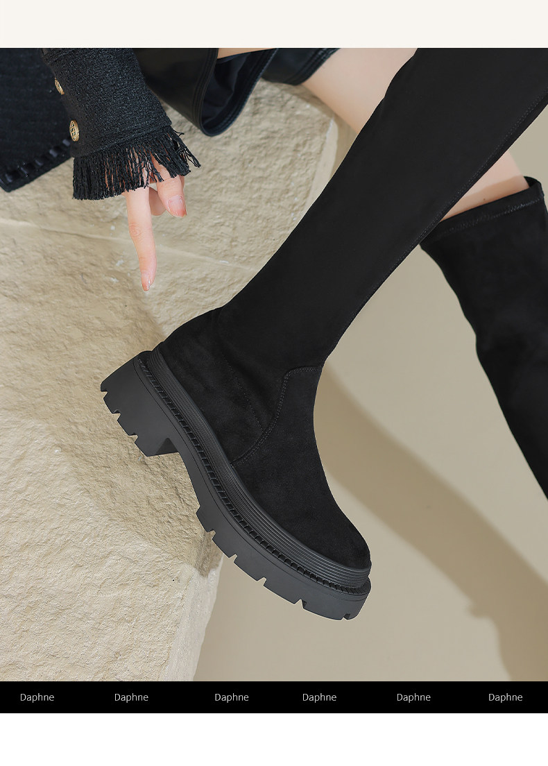 Daphne French-Style Stacked Over-The-Knee Boots 2025 Spring New Thick-Soled Long Boots Retro Elastic Slim Boots