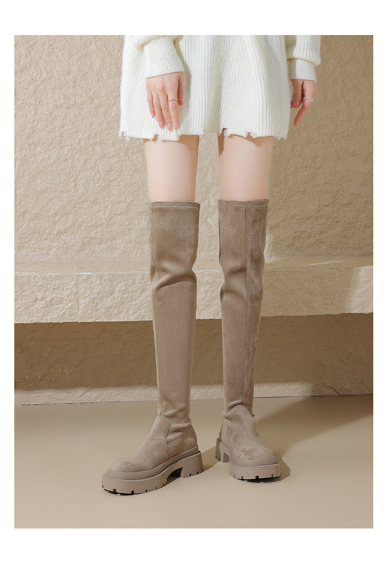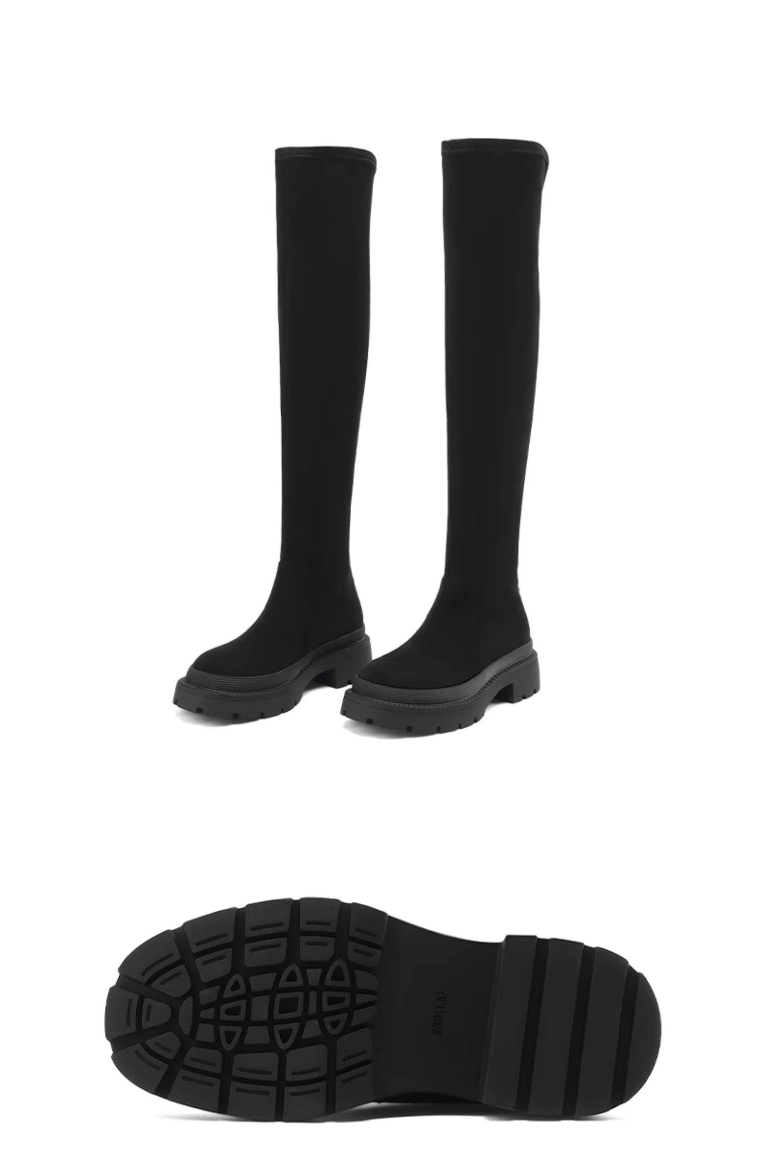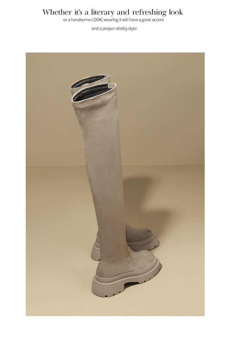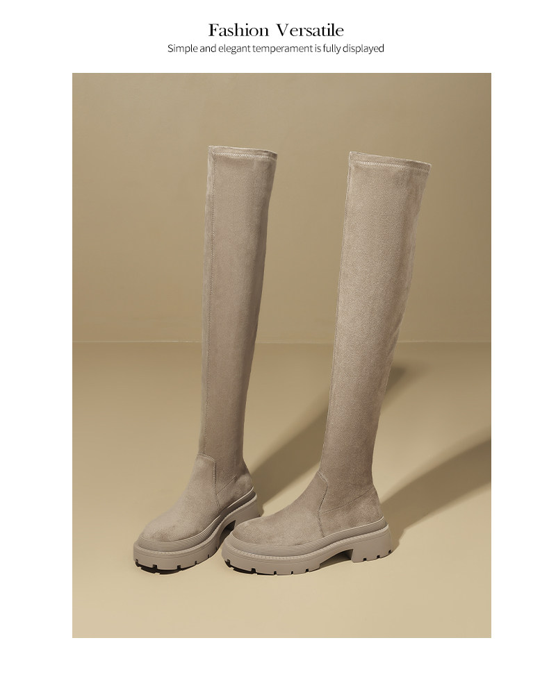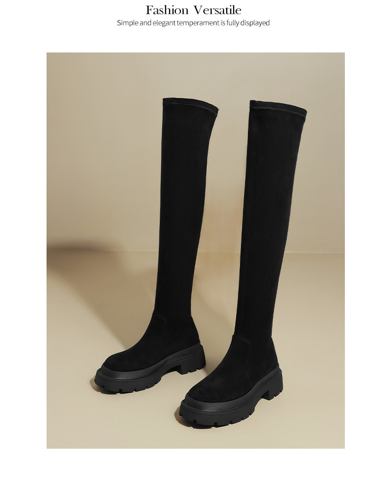 Daphne French-Style Stacked Over-The-Knee Boots 2025 Spring New Thick-Soled Long Boots Retro Elastic Slim Boots