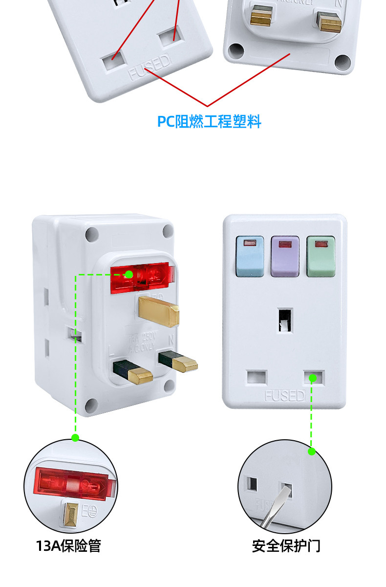 | Color Classification | Sc-223 British Plug[One-To-Three Splitter with Switch],Sc-224 British Standard Socket[One to Three],Sc-225 British Standard Socket[One to Two +3Usb],Sc-222 British Plug[One to Three],SC-4408[British Standard]4 Sockets (with Independent Switch) + 4 USB,SC-5415[British Standard]5 Sockets+Pd20W+Qc3.0,SC-10610[British Standard]10 Sockets[PD30W+QC3.0+4USB] |
