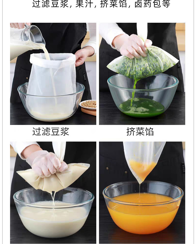 Ultra-Fine Soy Milk Filter Bag Nylon Filter Mesh Dumpling Filling Vegetable Water Squeezing Bag Filter Cloth Red Wine Filter Mesh Sieve