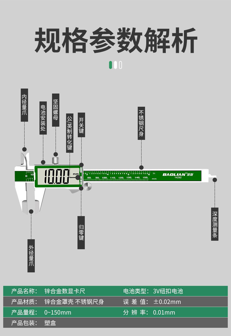 Baolian Stainless Steel Digital Caliper Industrial-Grade Household Oil Gauge Micrometer Small Tool High-Precision Caliper