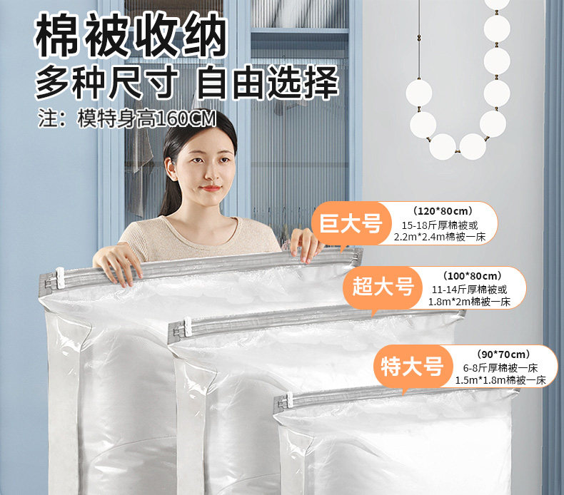 | Size | 6 Pieces [2 Extra Large + 4 Large],6 Pack [2 Extra Large + 4 Extra Large],6 Pieces [2 Extra Large + 2 Extra Large + 2 Large]❤Suitable for Renting a House,9 Pieces [3 Extra Large + 3 Large + 3 Medium]❤Clothing Storage,10 Pieces [3 Extra Large + 2 Extra Large + 3 Large + 2 Medium]❤A Must-Have for the Whole Family,6 Pieces [3 Medium + 3 Small],9 Pieces [3 Large + 3 Medium + 3 Small],6 Pieces [2 Extra Large + 2 Large + 2 Medium]❤Dormitory Storage,6 Pieces [1 Extra Large + 3 Large + 2 Medium] ❤ Down Jacket Storage,6 Pieces [2 Large + 2 Medium + 2 Small]❤28inch Suitcase,6 Pieces [3 Large + 3 Medium]❤Suitcase Universal,6 Pack [3 Huge + 3 Extra Large]❤Special for Thick Quilts,6 Pack [3 Extra Large + 3 Extra Large]❤Choose Me for Your Cotton Quilts,6 Pieces [2 Medium + 4 Small] 24inch Suitcase Recommendations,6 Pieces [3 Extra Large + 3 Large],4 Packs [2 Large + 2 Medium]❤Travel Recommendations,17 Pieces [2 Huge + 3 Extra Large + 3 Extra Large + 4 Large + 5 Medium],10 Pieces [2 Huge + 3 Extra Large + 2 Large + 3 Medium]❤Seasonal Recommendations,10 Pieces [2 Extra Large + 5 Large + 3 Medium]❤Moving and Packing,10 Pieces [5 Extra Large + 5 Large]❤2-4kg Quilt Recommendation,10 Pieces [5 Medium + 5 Small],2 Pack-Giant-120*80Cm❤[2* 2.3m Choose Me for the Quilt],2 Pack-Extra Large 100*80cm❤[1.8* 2m Choose Me for the Quilt],2 Pack-Extra Large 90*70cm,2 Pack-Large Size 80*60cm,2 Pack-Medium Size 70*50cm,5 Pack-Medium Size 70*50cm,6 Pack-Extra Large 100*80cm,6 Pack-Extra Large 90*70cm,6 Pack-Large Size 80*60cm,8 Pieces - Extra Large 100*80cm,8 Pieces-Large Size 80*60cm,8 Pieces - Medium Size 70*50cm,8 Pieces - Small Size 60*40cm,10 Pieces - Medium Size 70*50cm,.,..,...,.... |