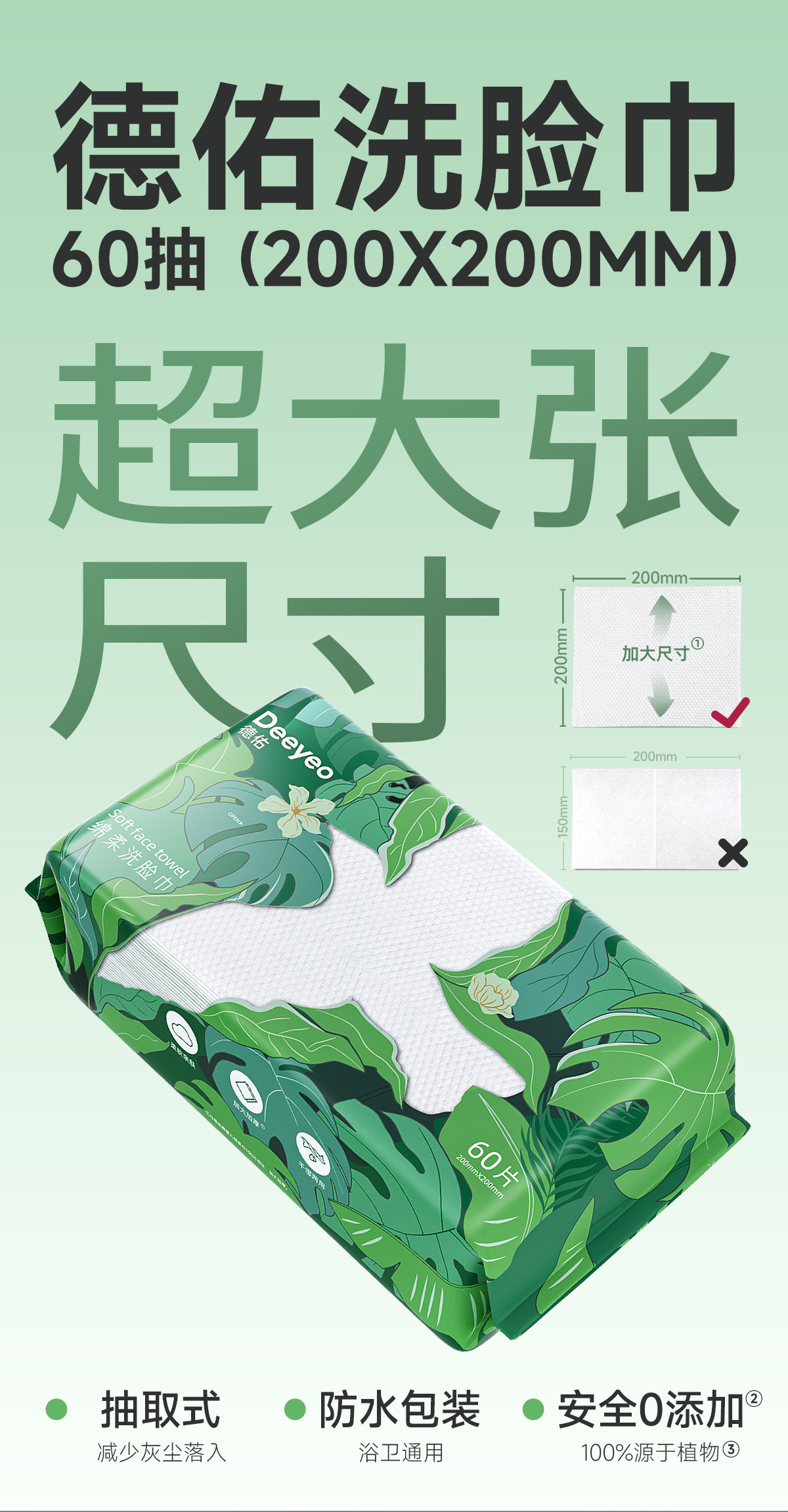 Deeyeo Disposable Face Towels, Extra Large and Thick, 60 Sheets Per Pack, 16 Packs