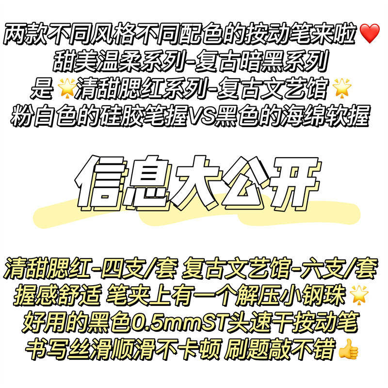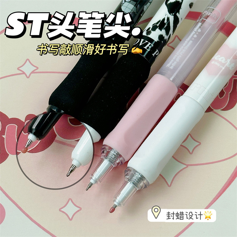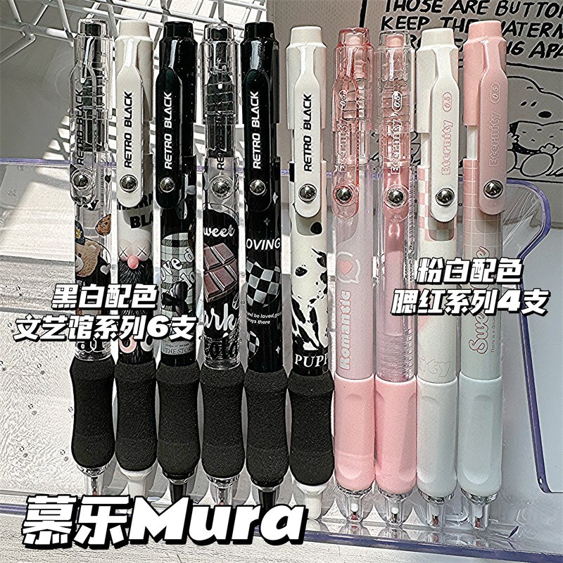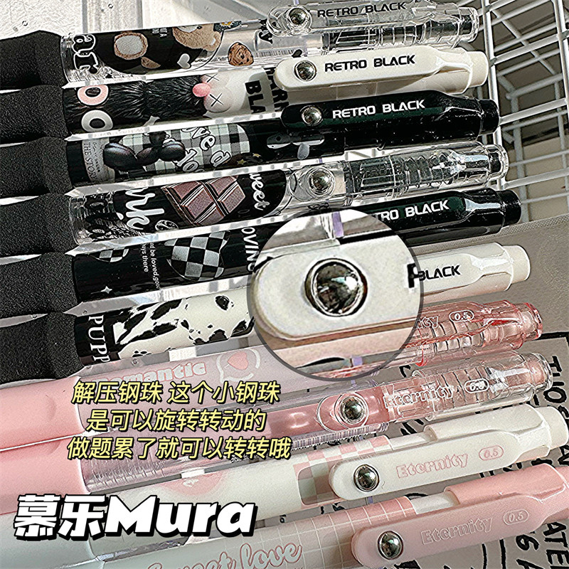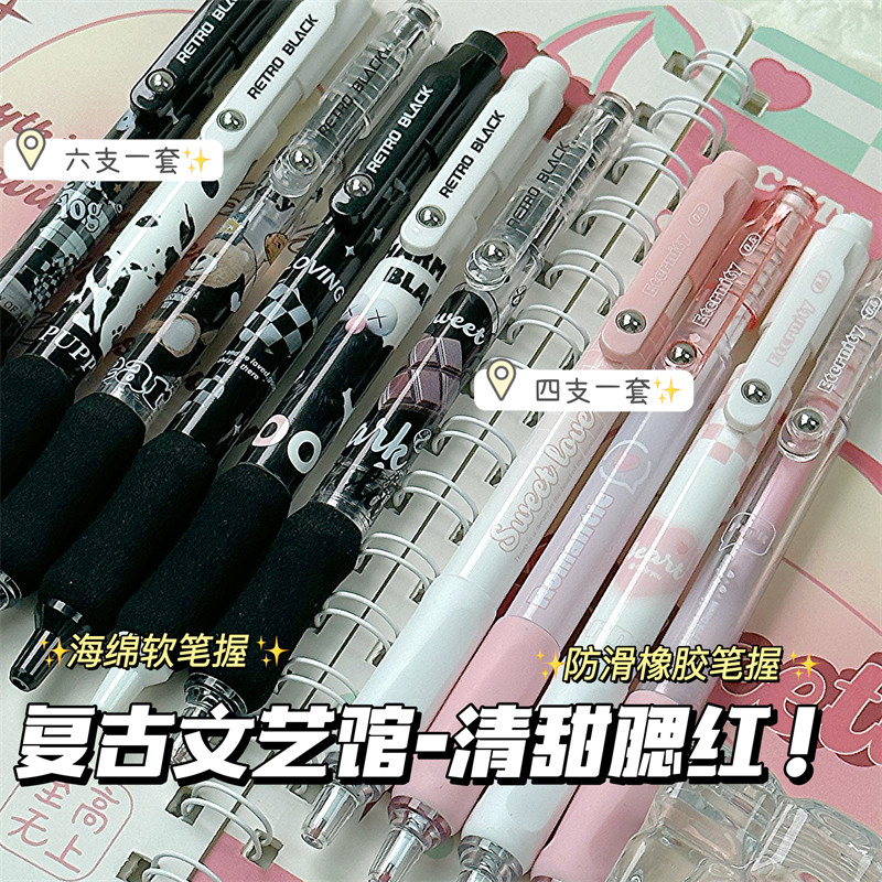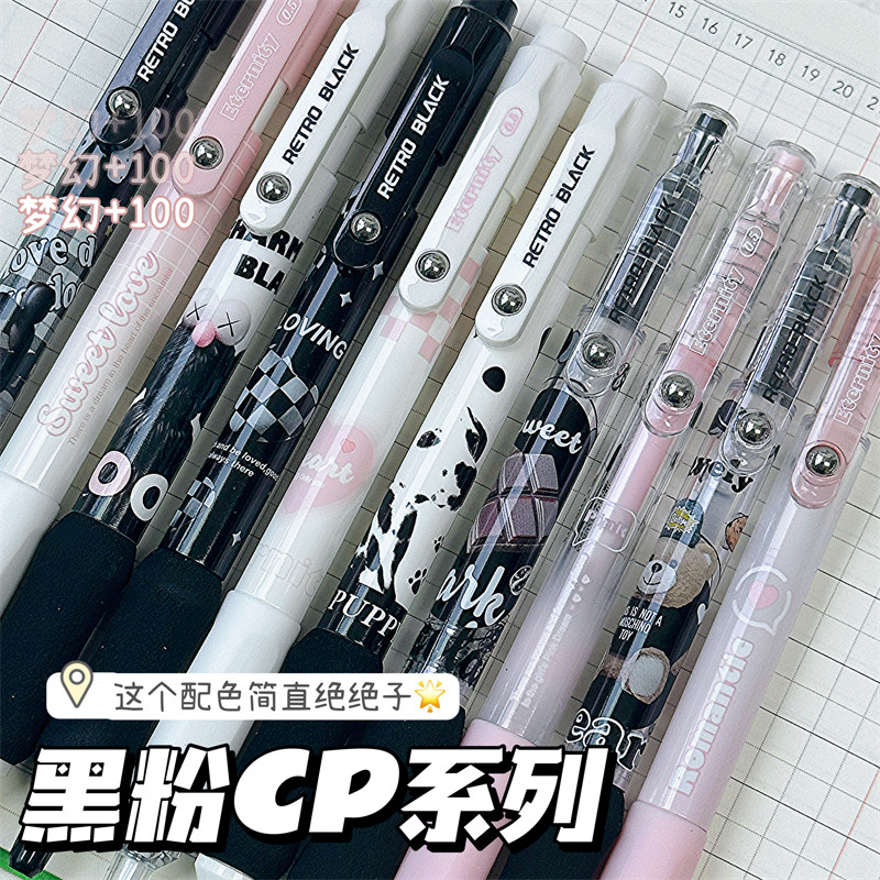 Mule Sweet Cool Black Powder Blush Retro Retractable Pen ins High-Quality Neutral Pen Black Pink Student Exam Pen Special for Exams 0.5mm Quick-Drying Smooth Black Pen