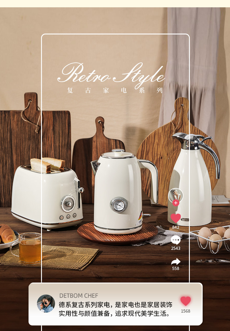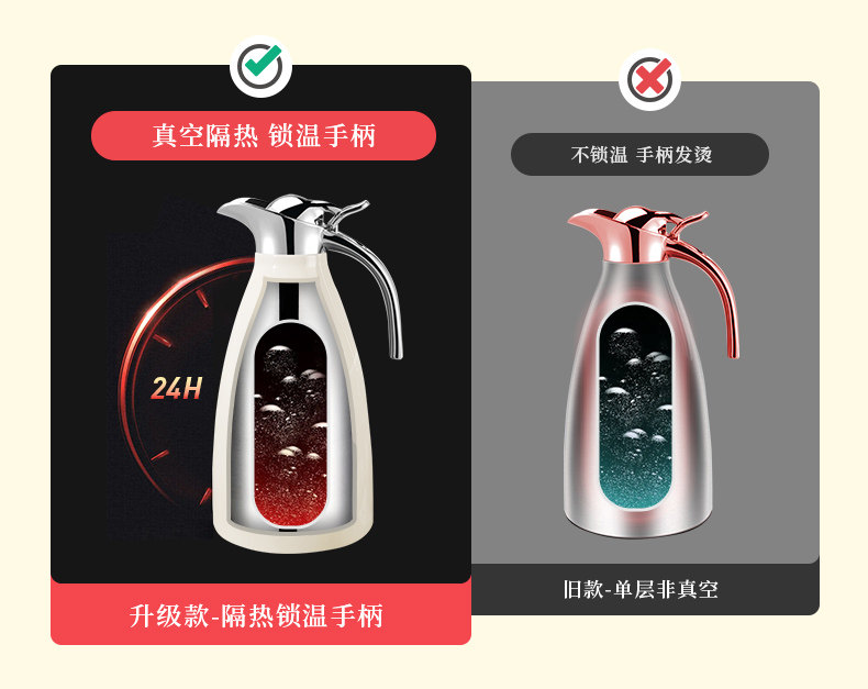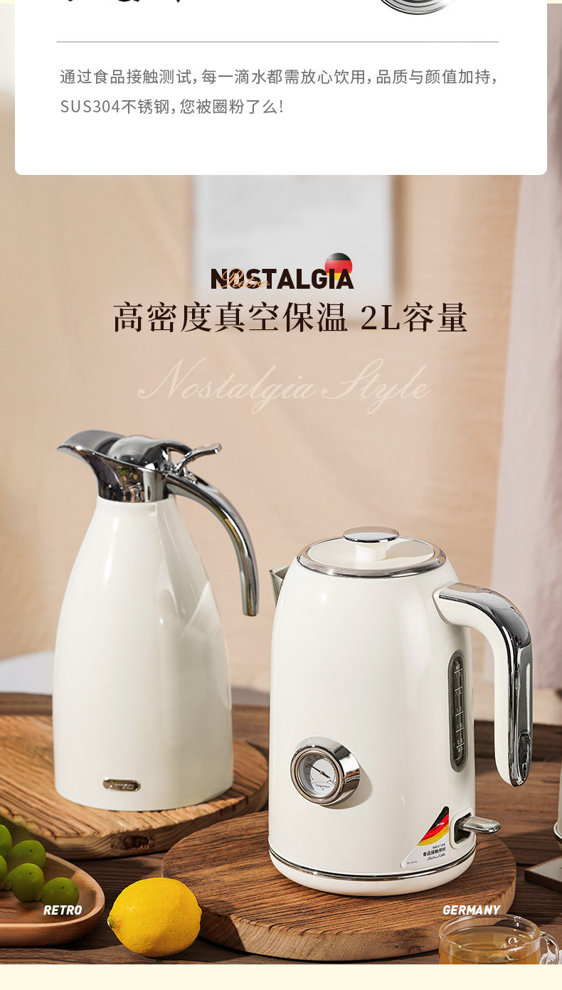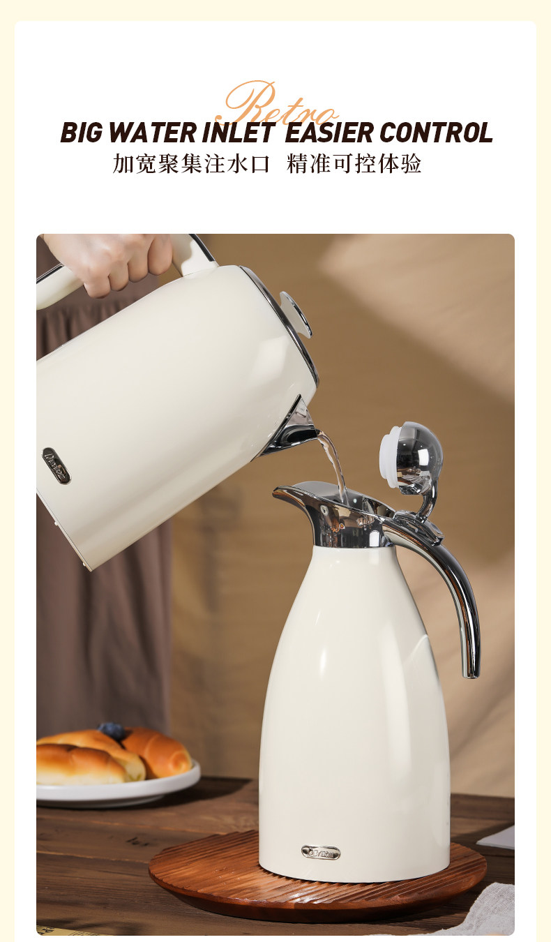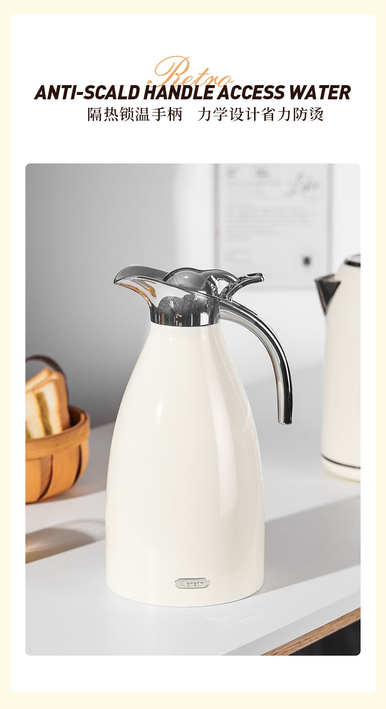 Debao Mai 304 Stainless Steel Insulated Kettle for Home Use, Retro Nordic Thermos, Large Capacity 2 Liters
