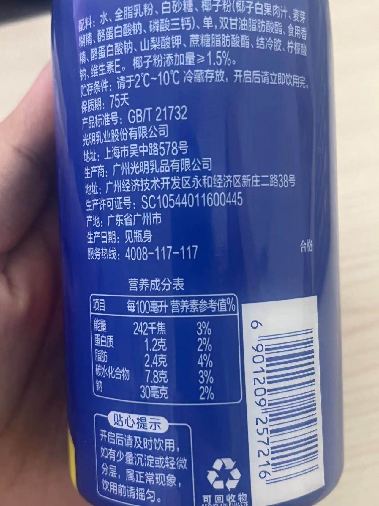 Guangming Look Coconut Milk Drink Officially Authorized Fresh Coconut Nutritional Low-Temperature Milk Ready-To-Drink Beverage