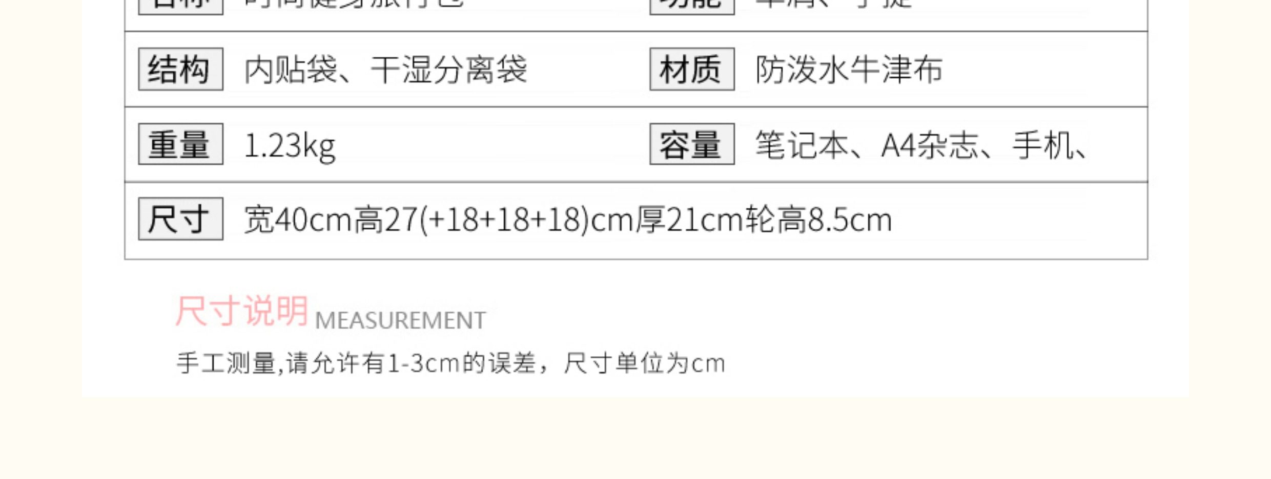 | Bag Size | Width 41.5 High 35 Plus One Layer 14 Plus Two Layers 14 Thick 23 Portable 24 Weight 0.79 |