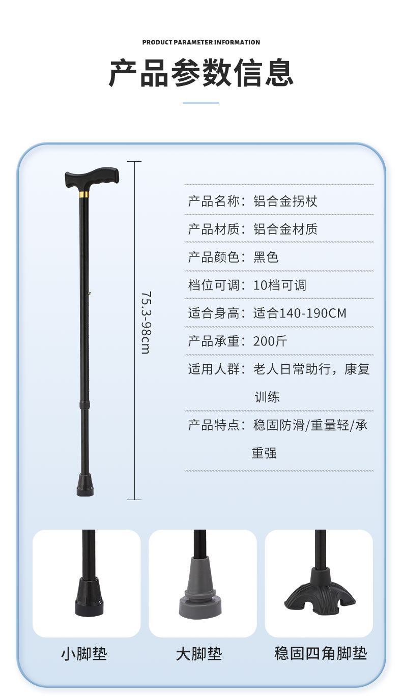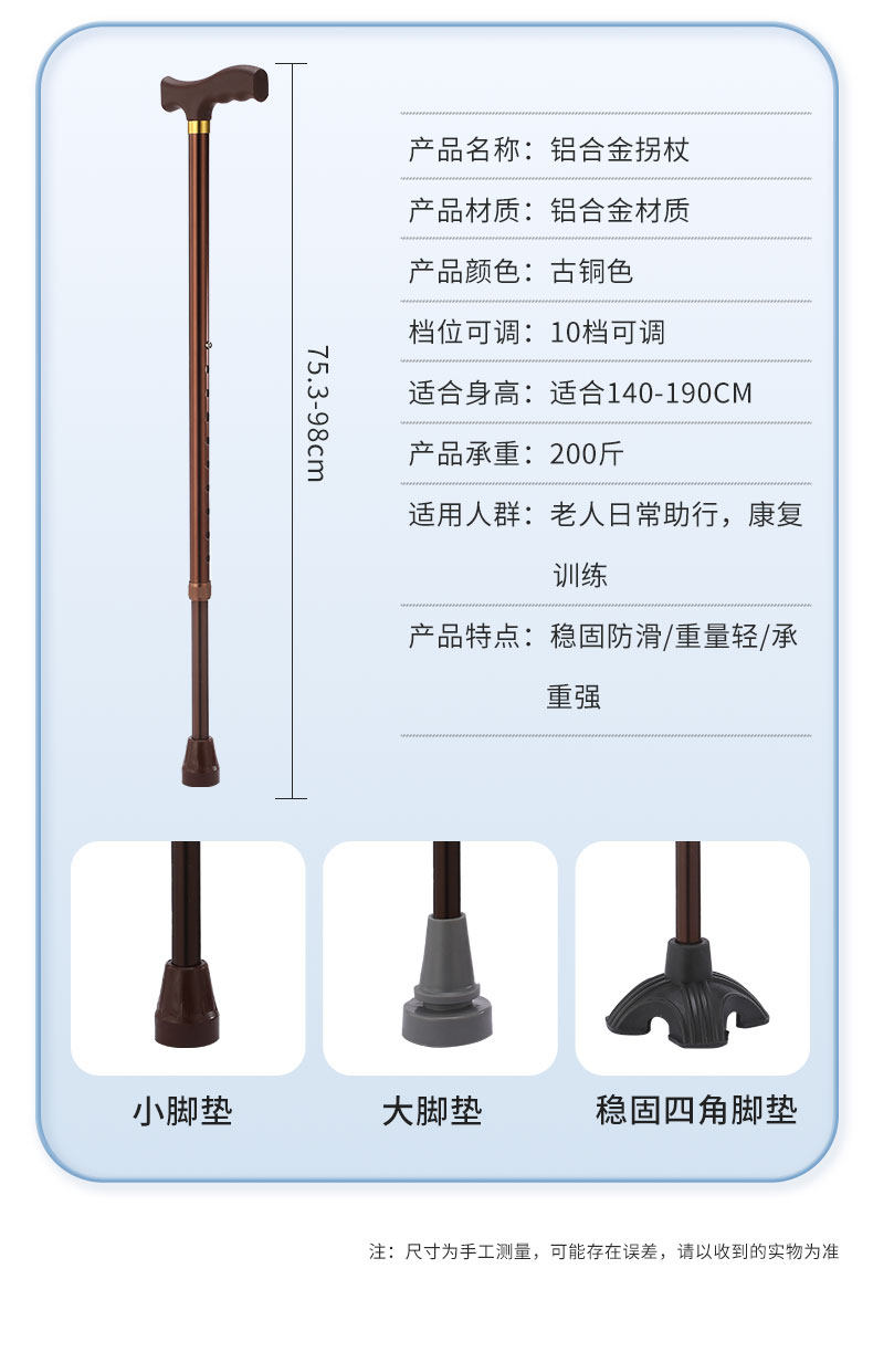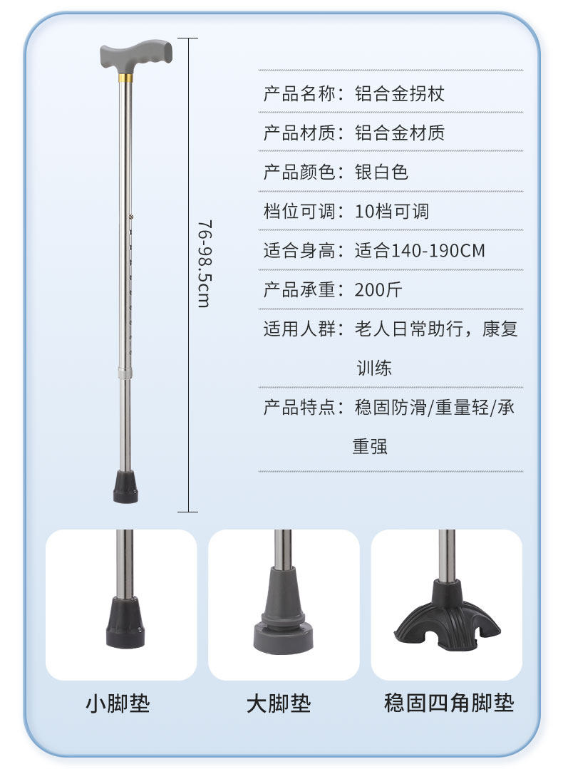 | Color Classification | Thickened Aluminum Alloy Single-Leg Crutch [Silver + Free Spare Foot Pads],Thickened Aluminum Alloy Single-Leg Crutch [Bronze Color + Free Spare Foot Pads],Thickened Aluminum Alloy Single-Leg Crutch [Black + Free Spare Foot Pads],Thickened Aluminum Alloy Single-Leg Crutch [Silver Enlarged Rubber Pad],Thickened Aluminum Alloy Single-Leg Crutch [Bronze Color, Enlarged Rubber Pad],Thickened Aluminum Alloy Single-Leg Crutch [Black Enlarged Rubber Pad],Thickened Aluminum Alloy Single-Leg Crutch [Silver with Led Light],Thickened Aluminum Alloy Single-Leg Crutch [Bronze with Led Light],Thickened Aluminum Alloy Single-Leg Crutch [Black with Led Light],Thickened Aluminum Alloy Single Leg/Small Four-Corner Dual-Use Model [Silver],Thickened Aluminum Alloy Single Leg/Small Square Dual-Use Model [Bronze Color],Thickened Aluminum Alloy Single Leg/Small Four-Corner Dual-Use Model [Black] |