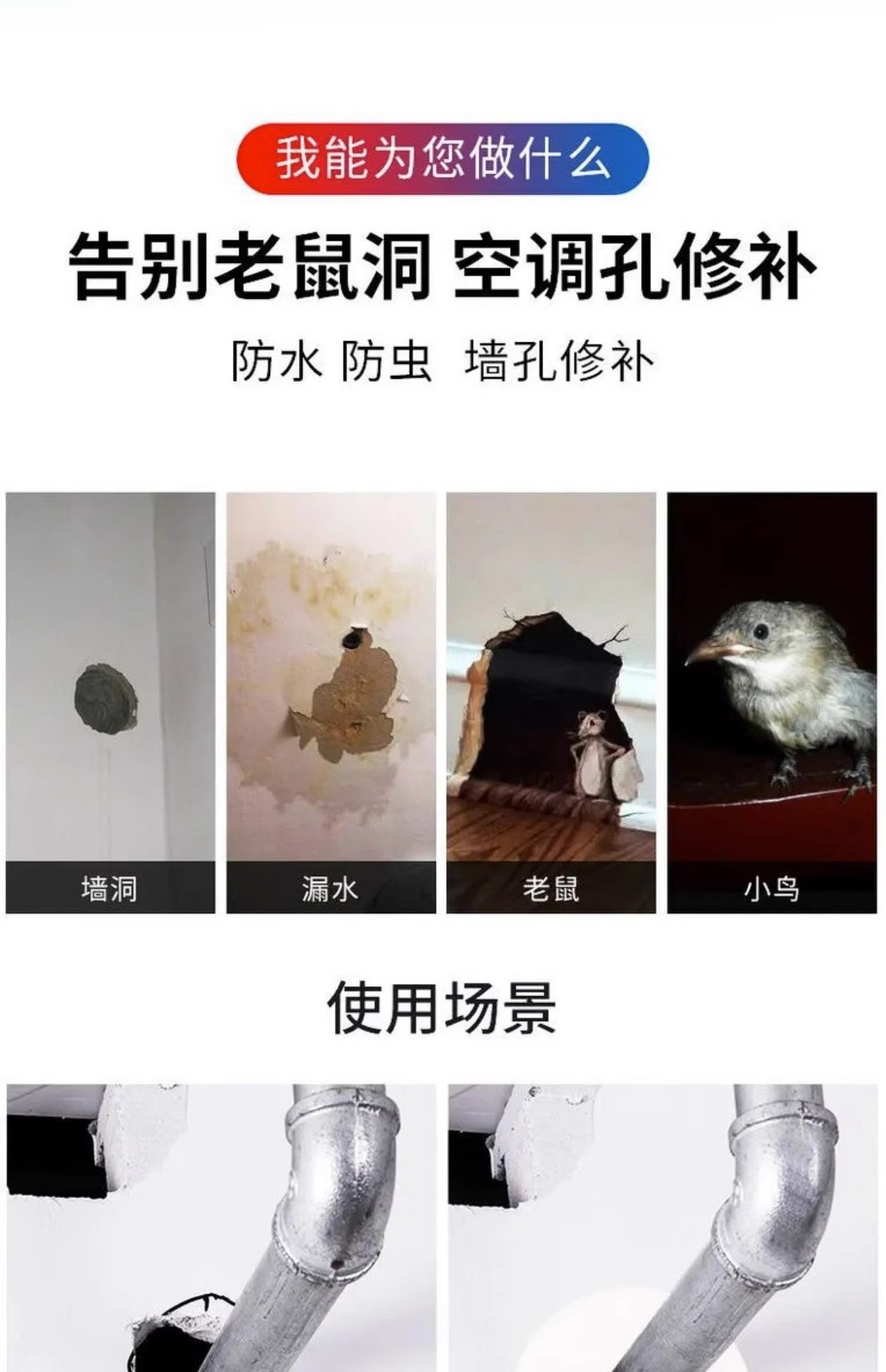 Air Conditioning Hole Sealing Putty to Block Wall Holes, Isolate Odors, Waterproof, Leak-Proof, Insect-Proof, Sewer Anti-Odor Magic Tool