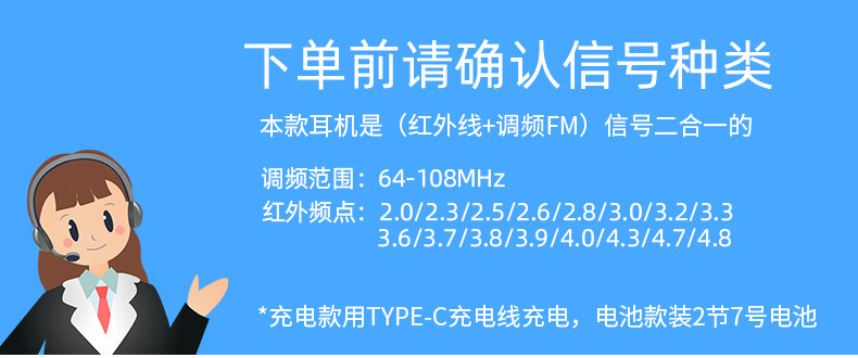 Infrared Level Four and Six Listening Headphones If2.0/2.3/2.6/2.8/3.2/3.6/3.8/4.0Mhz Frequency Modulation