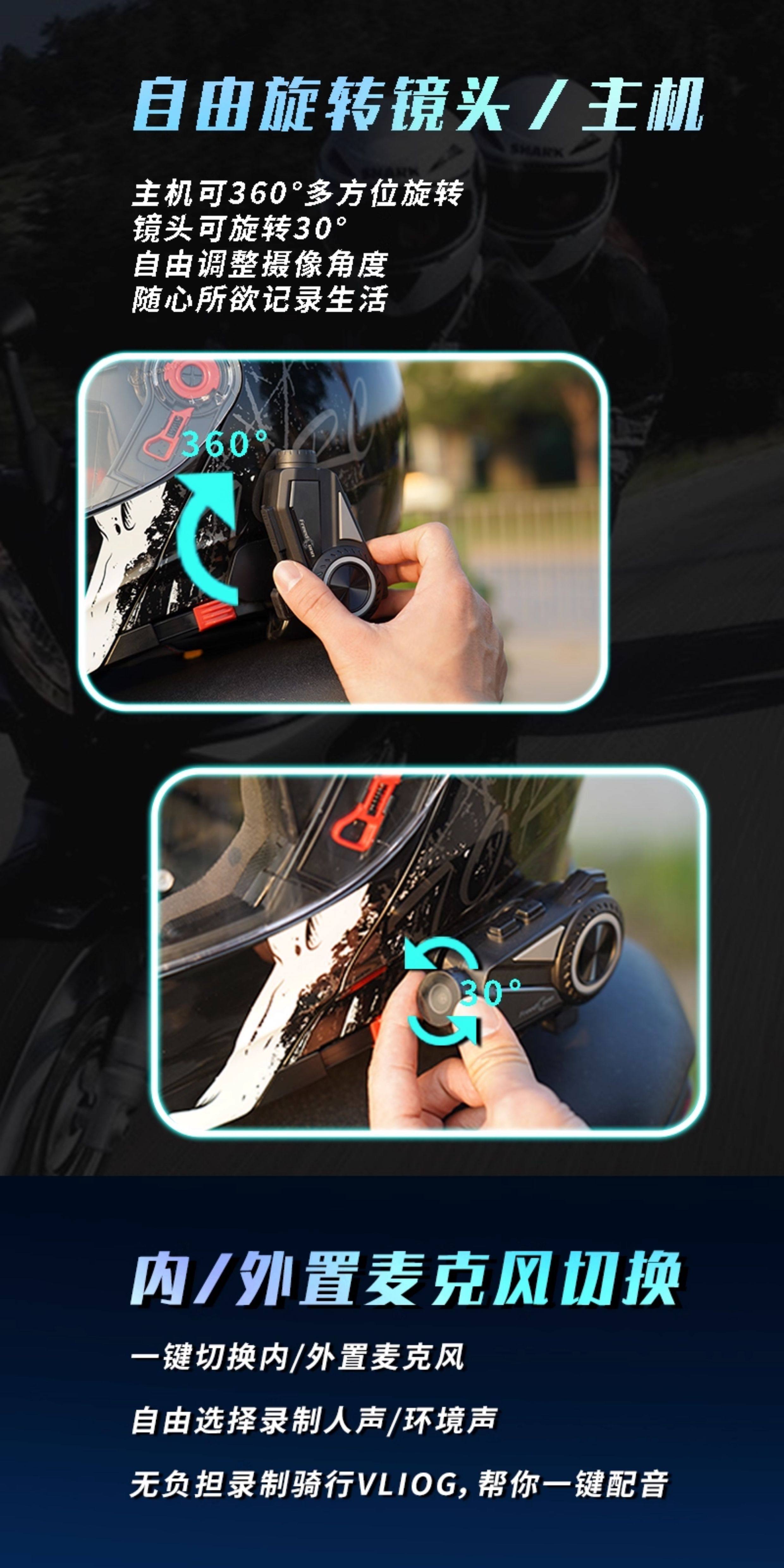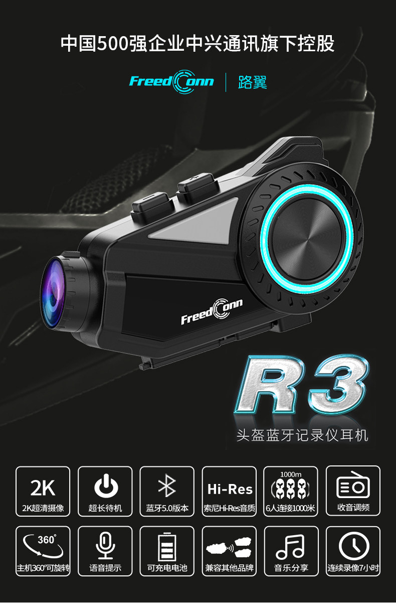 Luyi R3Pro Motorcycle Driving Recorder High-Definition 2K Helmet Bluetooth Headset Camera Intercom All-In-One Machine R1