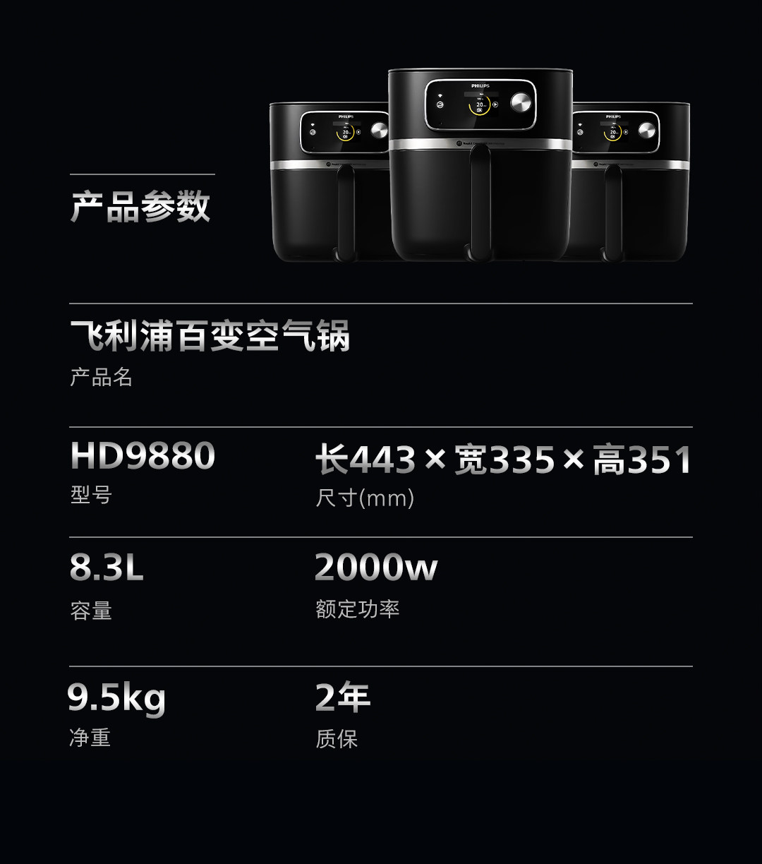 Philips Air Fryer Household Large-Capacity Official Smart Electric Fryer official store Hd9880