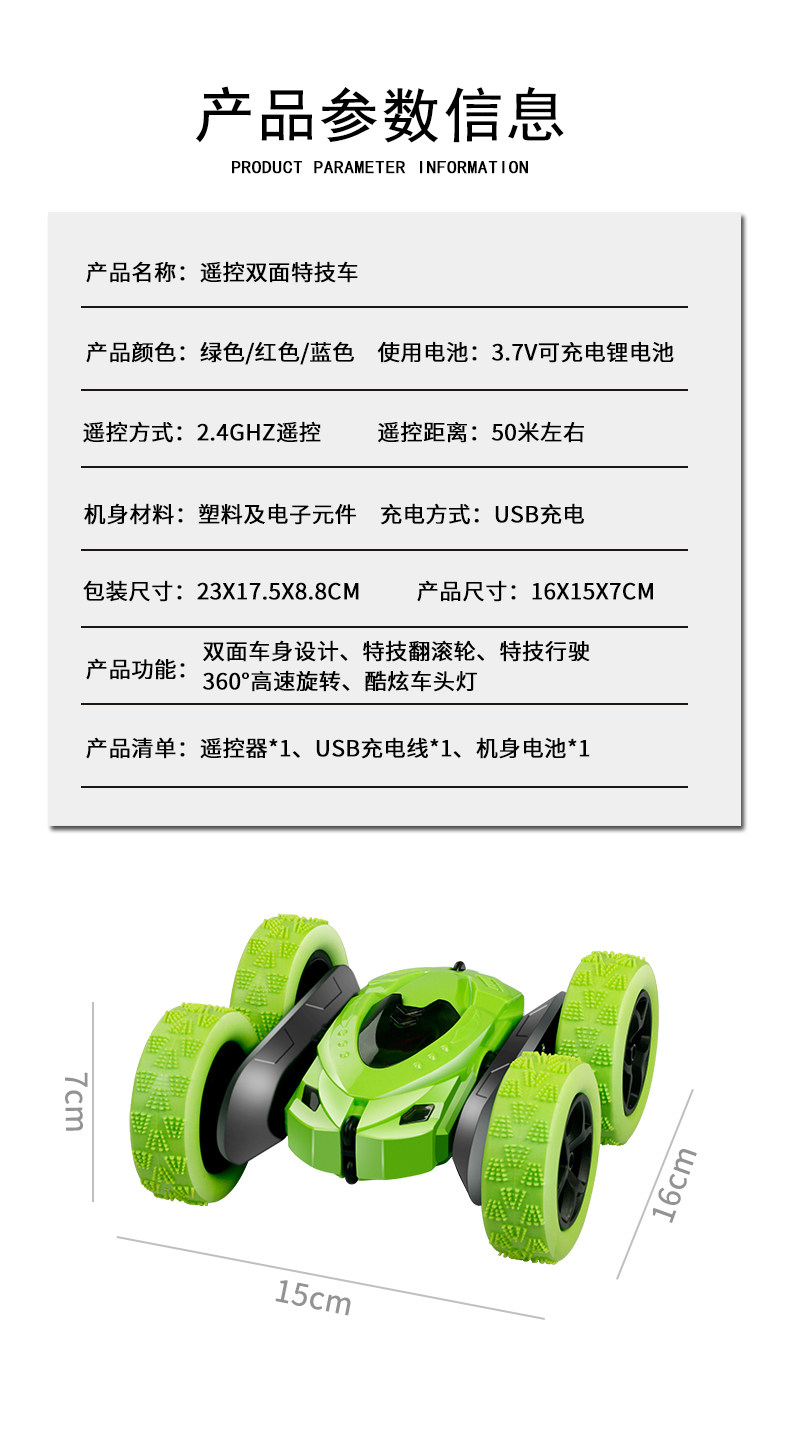 | Color Classification | Double-Sided Stunt Car - Blue (Dual Battery, Mid-Range Configuration),Double-Sided Stunt Car - Red (Dual Battery, Mid-Range Configuration),Double-Sided Stunt Car - Green (Dual Battery, Mid-Range Configuration),Double-Sided Stunt Car - Blue (High-Spec Electric Power System),Double-Sided Stunt Car - Red (High-Spec Electric Power System),Double-Sided Stunt Car - Green (High-Spec Electric Power System),Double-Sided Stunt Car - Blue (Standard Single Battery Configuration),Double-Sided Stunt Car - Red (Standard Single Battery Configuration),Double-Sided Stunt Car - Green (Standard Single Battery Configuration) |