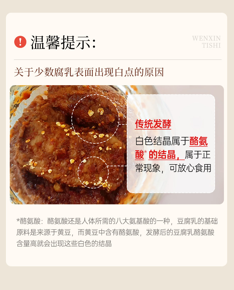 | Taste | 6 Bottles of Fermented Bean Curd,Spicy Fermented Bean Curd 6 Bottles,Plain Fermented Bean Curd 6 Bottles,3 Bottles of Oily Fermented Bean Curd + 3 Bottles of Spicy Fermented Bean Curd,2 Bottles of Oily Fermented Bean Curd + 2 Bottles of Spicy Fermented Bean Curd + 2 Bottles of Vegetarian Fermented Bean Curd |