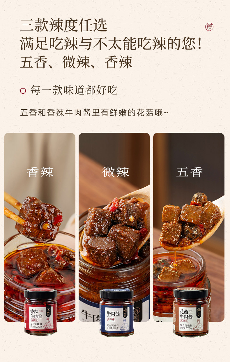 | Taste | [Mildly Spicy] Beef Sauce 4 Bottles,[Spicy] Spicy Beef Sauce 4 Bottles,【Five Spice】Flower Mushroom Beef Sauce 4 Bottles |