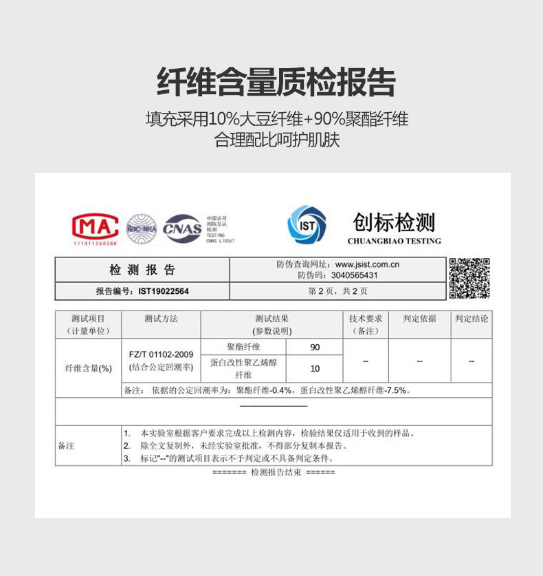 | Type of Filling Fiber | Soy Protein Modified Polyester Fiber |