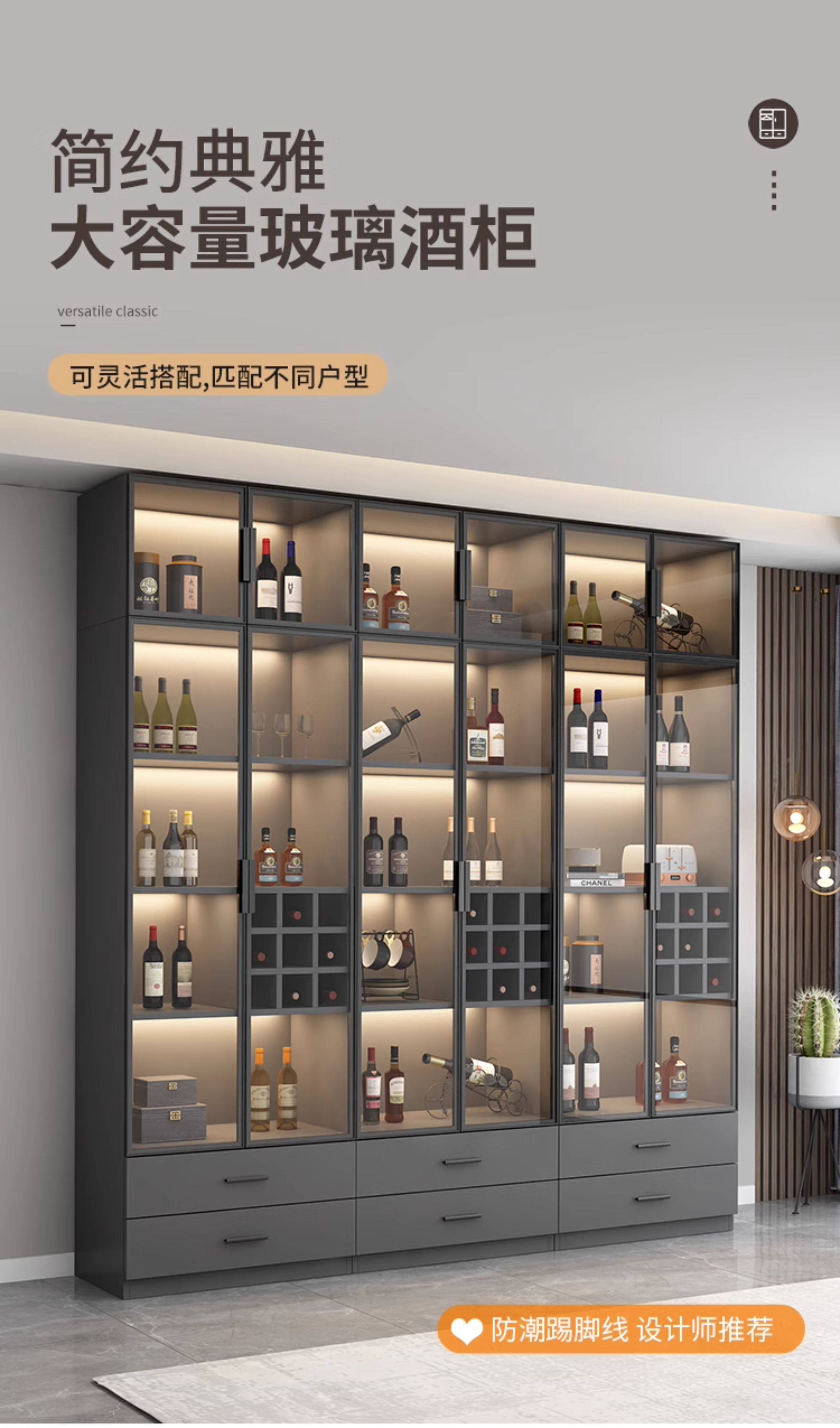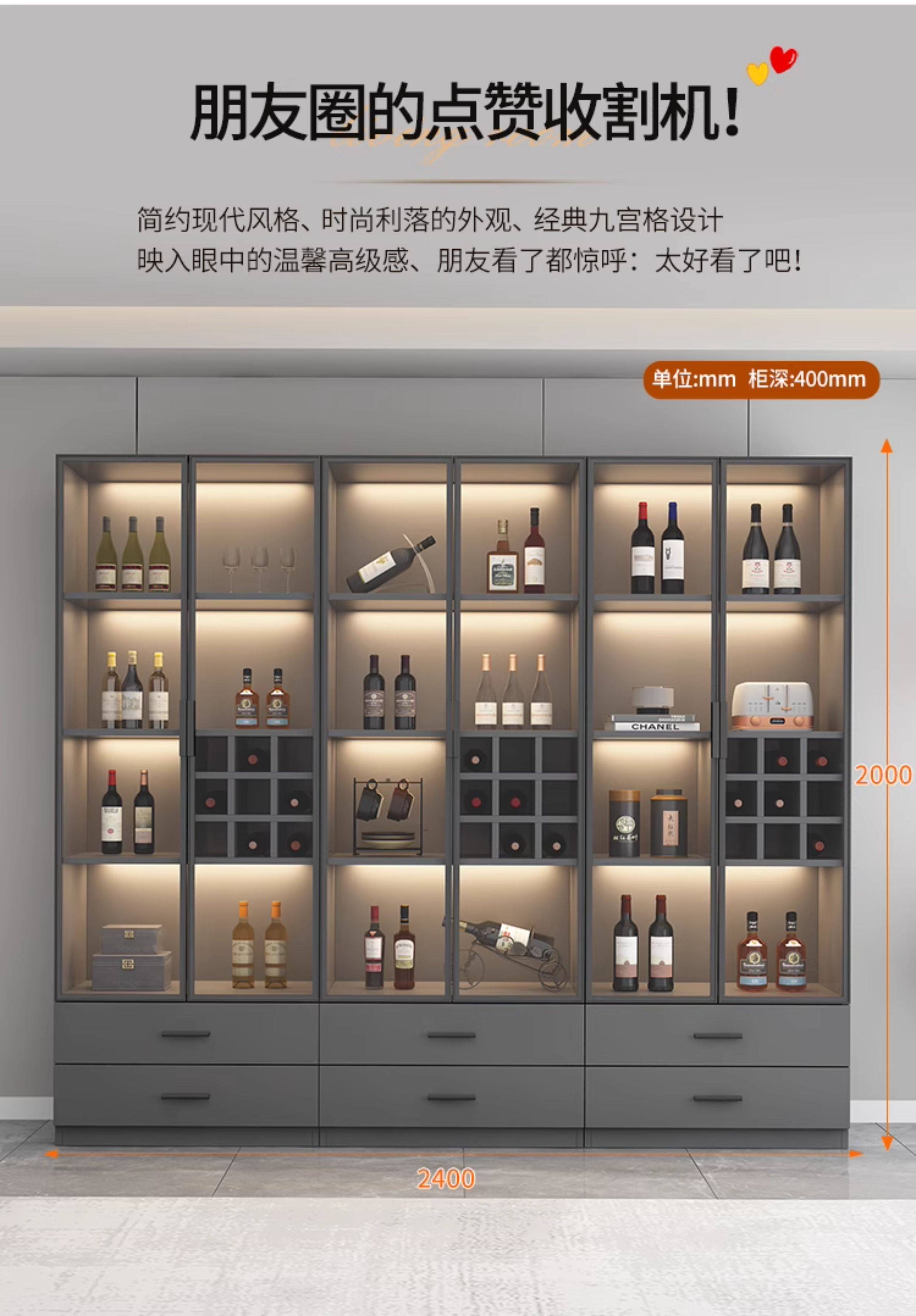 Glass Trendy Small Wine Cabinet Display Cabinet Living Room 2023 New Model Wine Rack High-End Light Luxury Modern Home Wall-Mounted Commercial Use