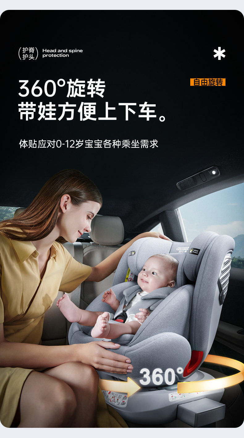 Beibitu Beiyue Kids Safety Seat for Cars, Suitable for Infants and Babies Aged 0-12 Years, 360-Degree Rotating Car Seat