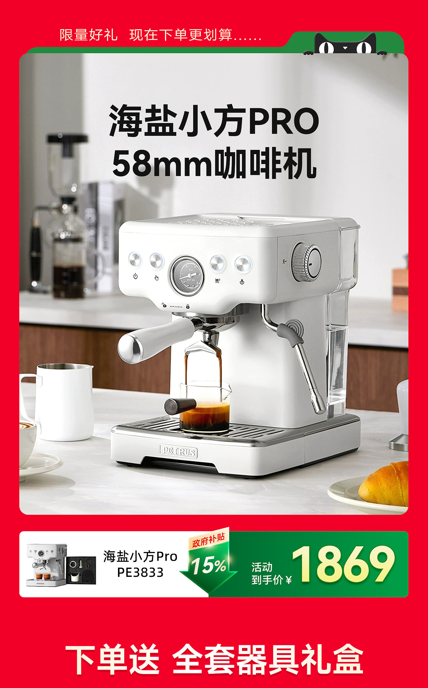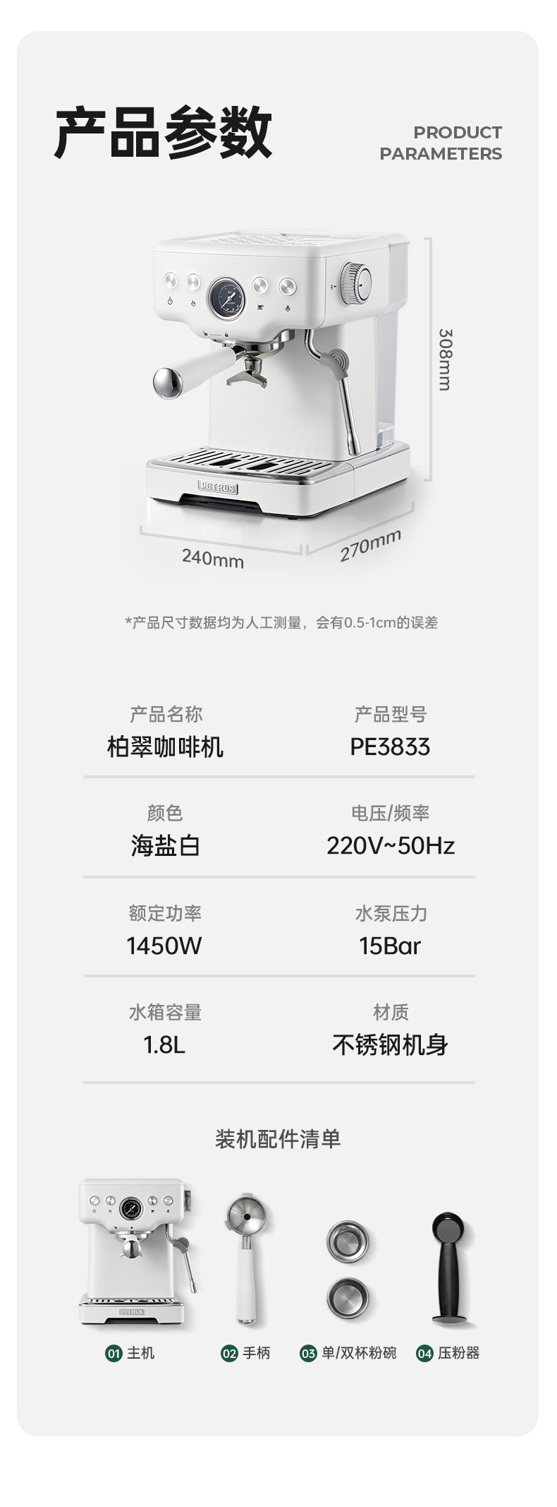 Petrus Pe3833 Sea Salt Square Pro Small Household Coffee Machine Semi-Automatic Professional Italian Style 3690