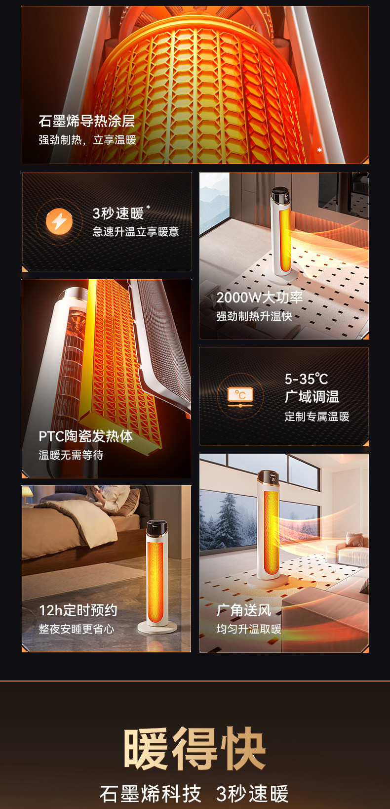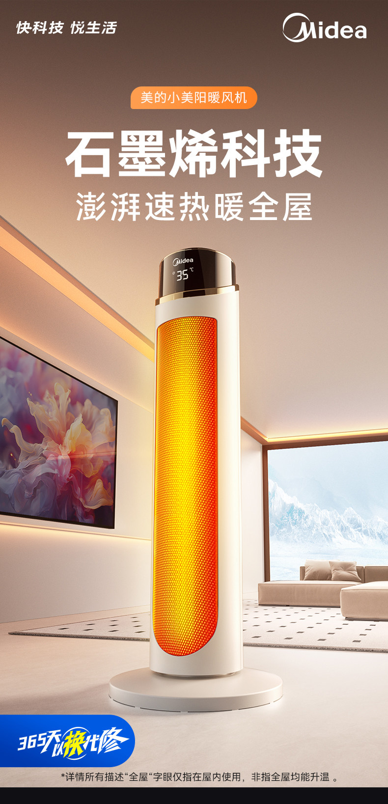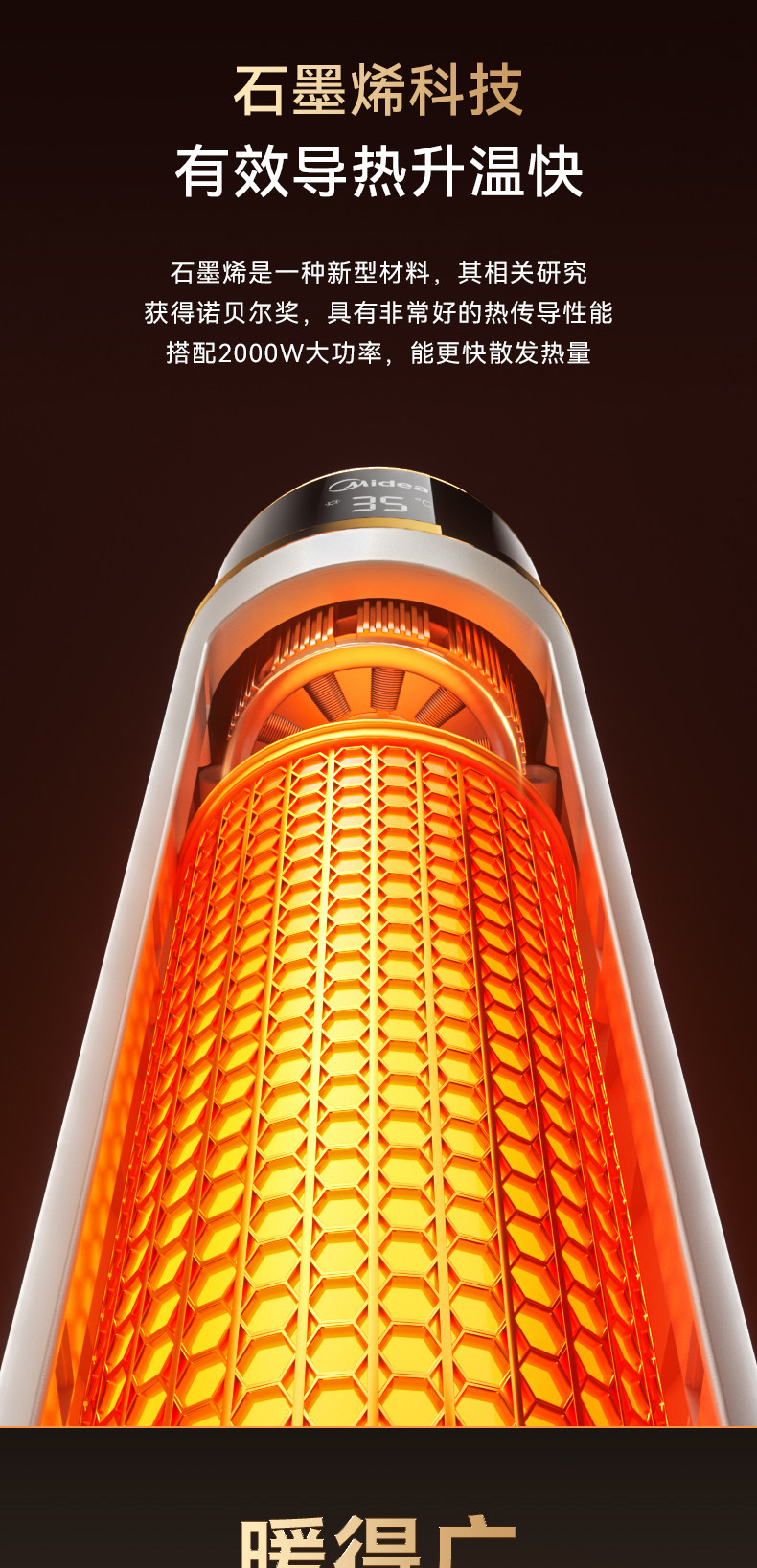 Midea Graphene Heater Hot Air Fan Heater for Home Energy-Saving Winter Heating Stove 2025 New Electric Heater